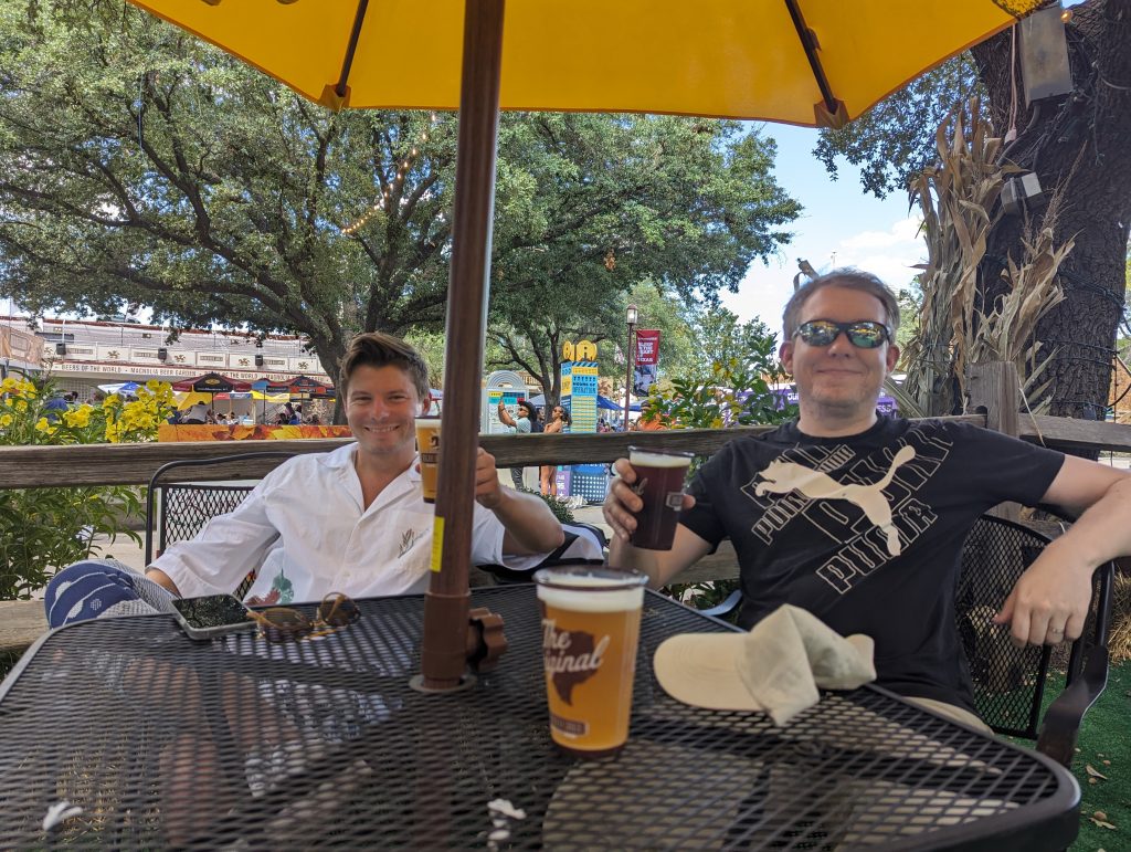 • Now it is time for refreshments and I get an iced tea, which is served in a huge Texan Statefair Cup with a straw, which we then keep and which actually proves to be practical on our following road trips.