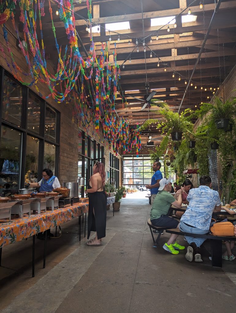 • For breakfast we go to the Social Club, which is located right at the border to Deep Ellum and is huge: There is a bowling hall, several slot machines, karaoke, etc., etc. – the tables are located in a huge hall, in the middle of which is a bar and in which even the many tables seem a bit lost, just as lost as we, who are sitting all alone in the huge room.