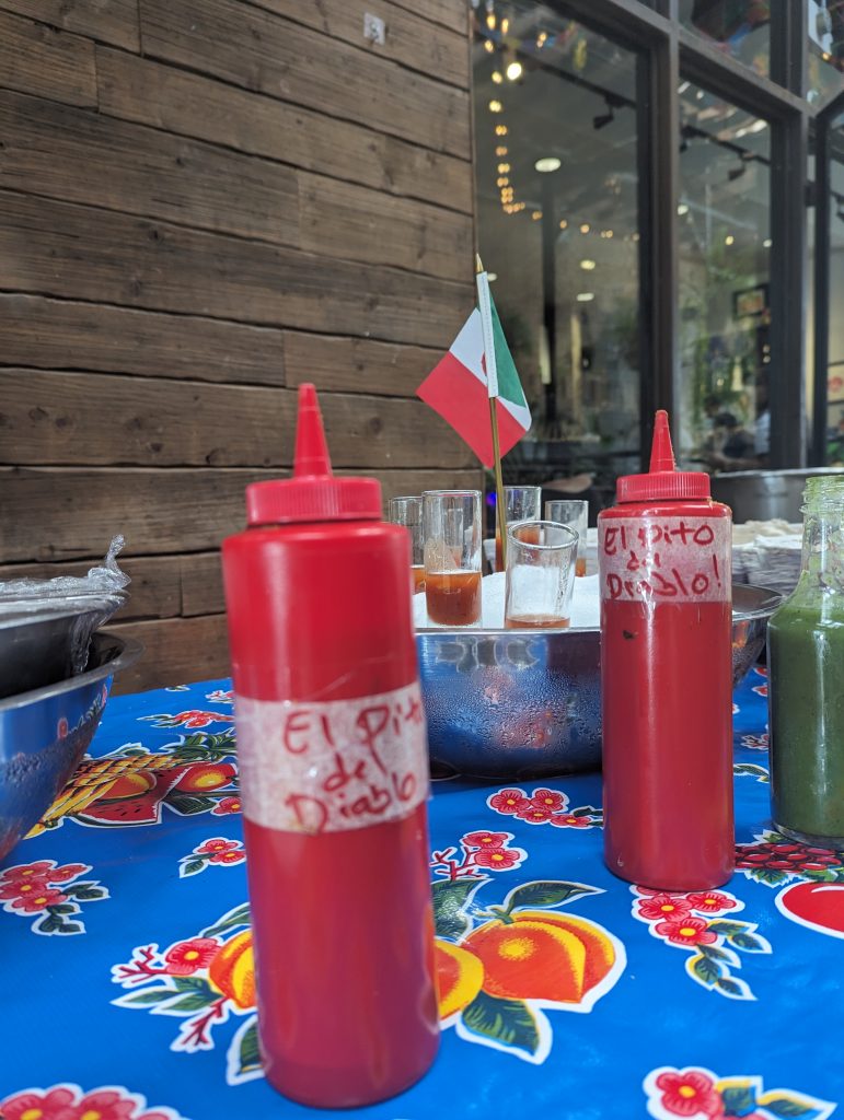 • There is a super hot sauce that has the handwritten label “El pito de diablo” and we, with our non-existent knowledge of Spanish, wonder what that means.