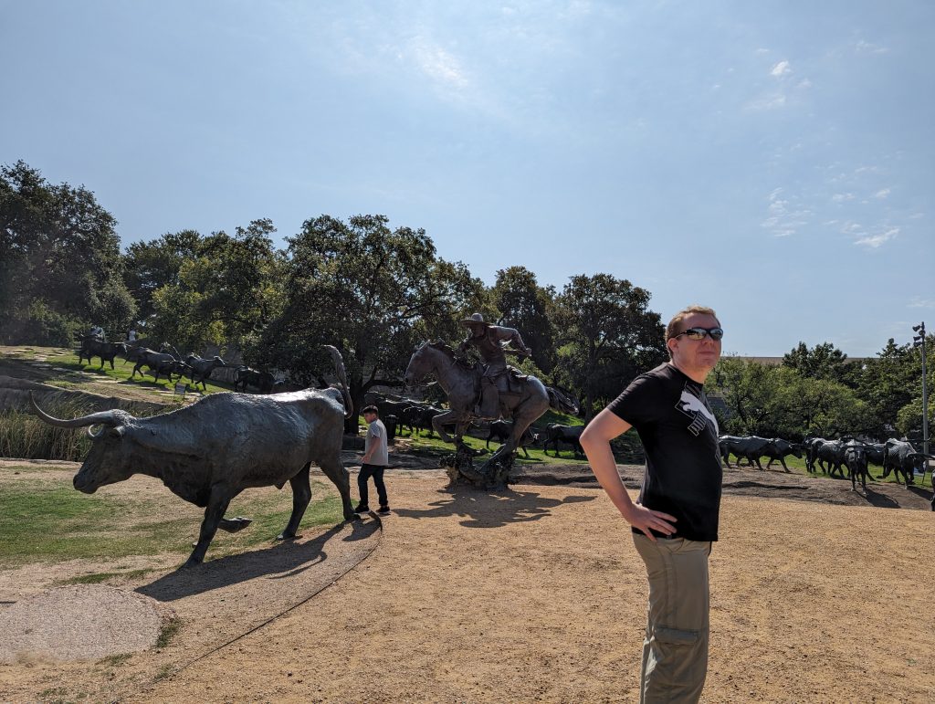 • We make our way to the Big Tex, a huge statue of a cowboy with a hat and without a horse, in front of which we of course take a photo – following the example of many others