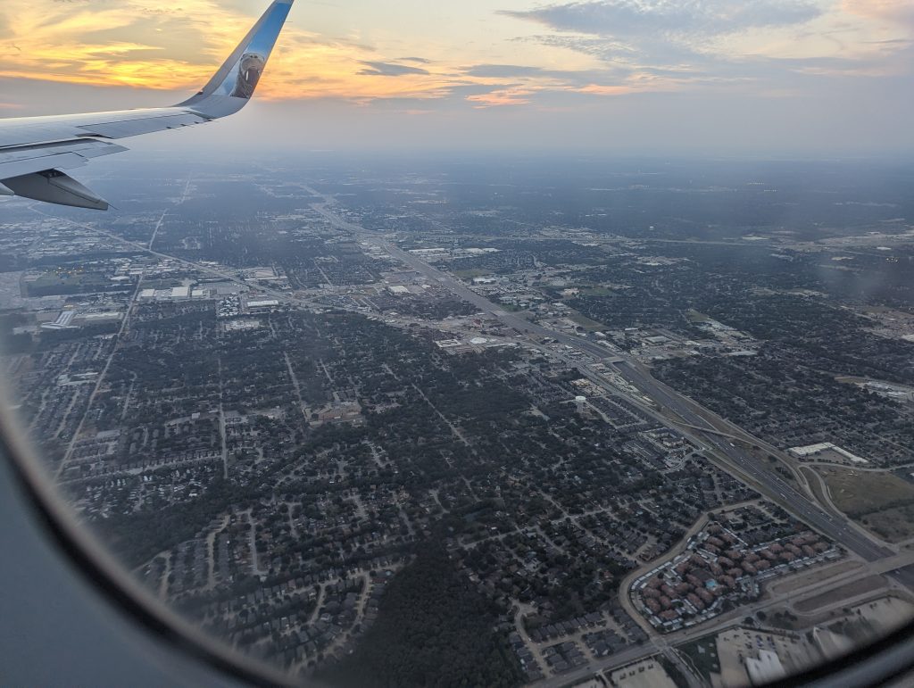 • Off we go to the airport, where it turns out to be more difficult than expected to find the right counter for Frontier, but we finally check in our luggage successfully