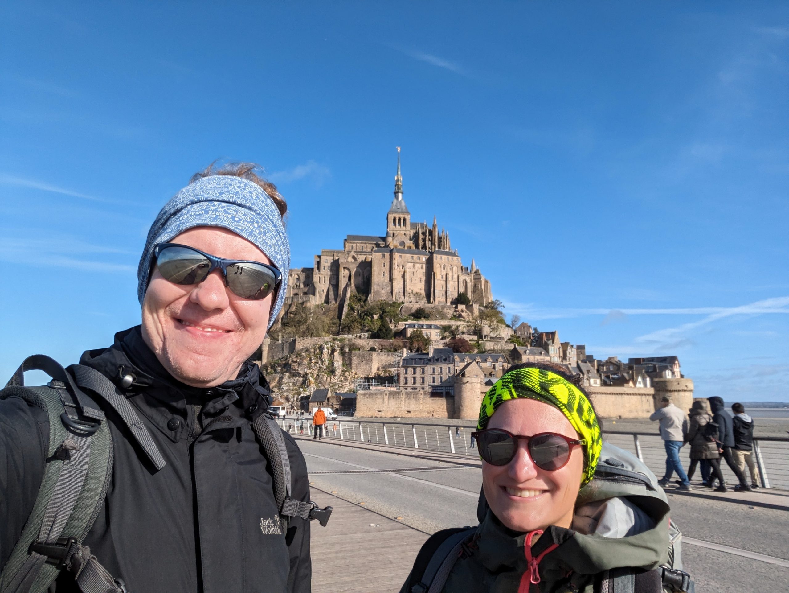 • At least Mont Saint Michel can soon be seen on the horizon, which is little consolation when you consider how flat everything is here and how the visual perception of a destination doesn’t say much about the distance to the destination – it can be anything from 5km to 50km.