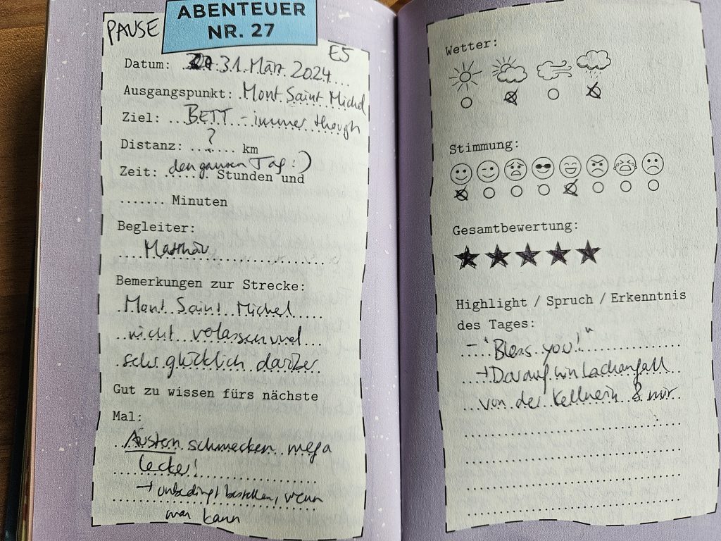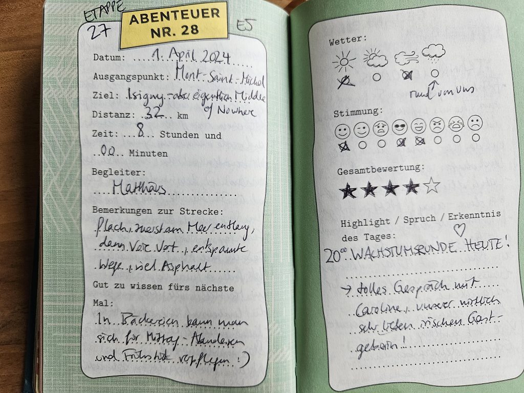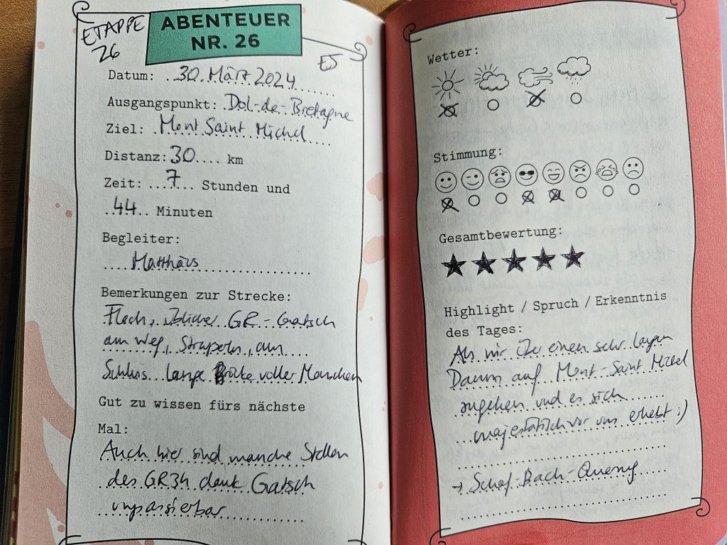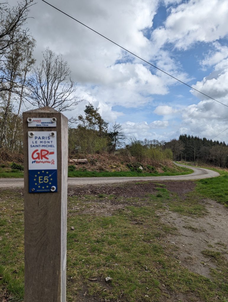 • There we are immediately greeted by another unpleasant surprise: A wooden sign saying ‘Le Mont Saint Michel 45km’ – after about 10 kilometres of hiking today