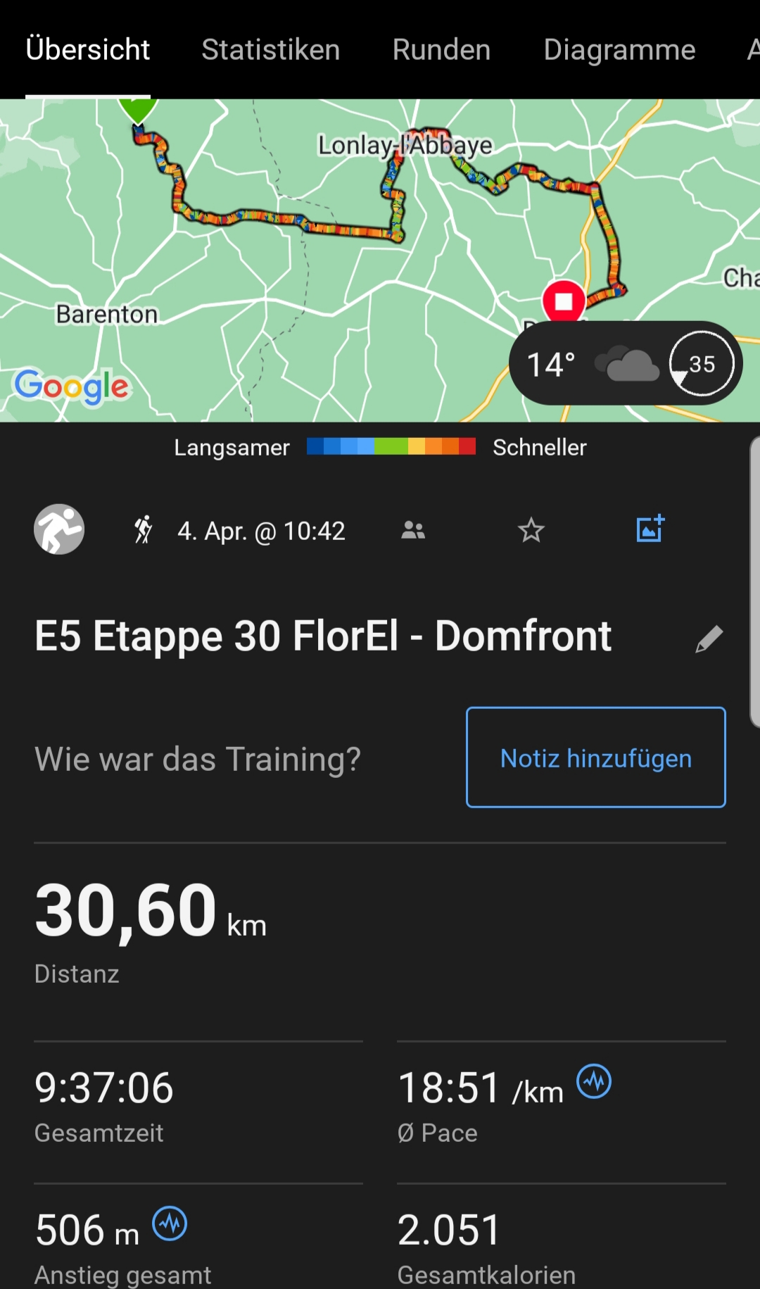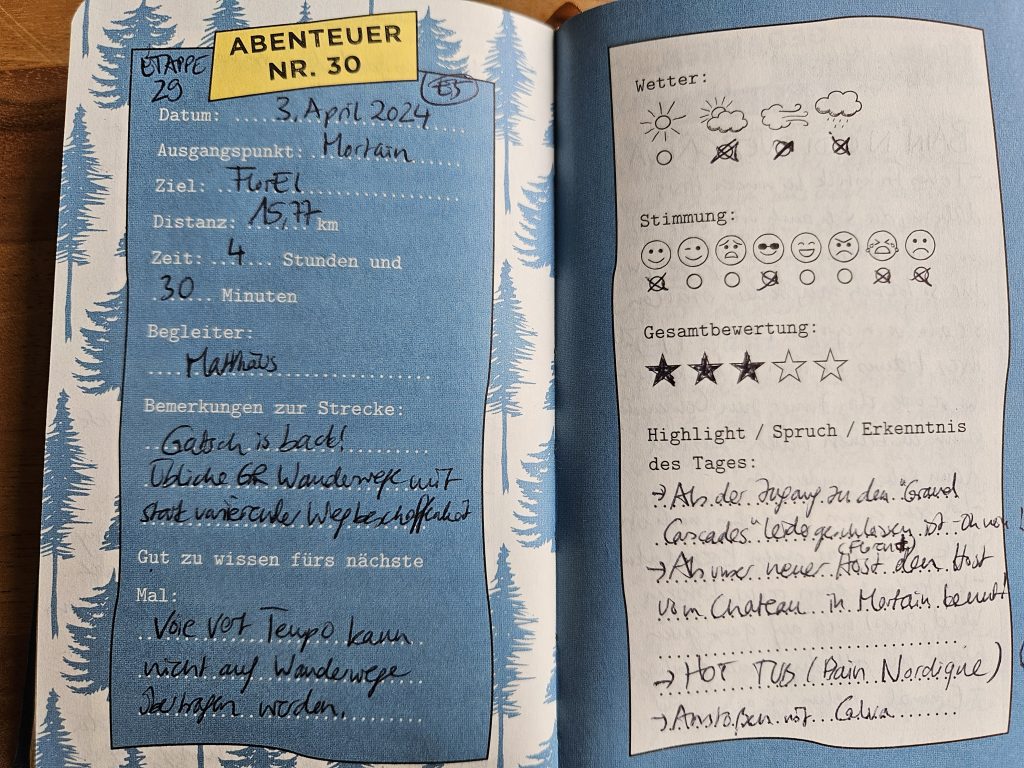 • As a consolation, we also see our first E5 hiking sign! On stage 30! Yes – we’re on the right track after all!
