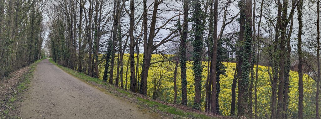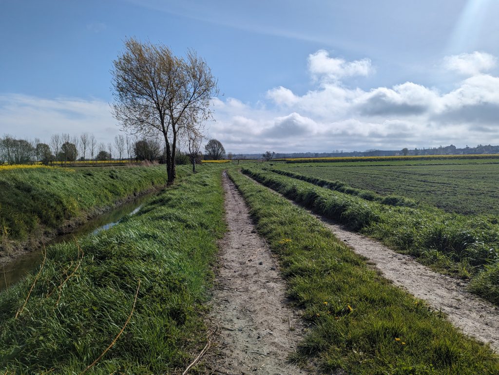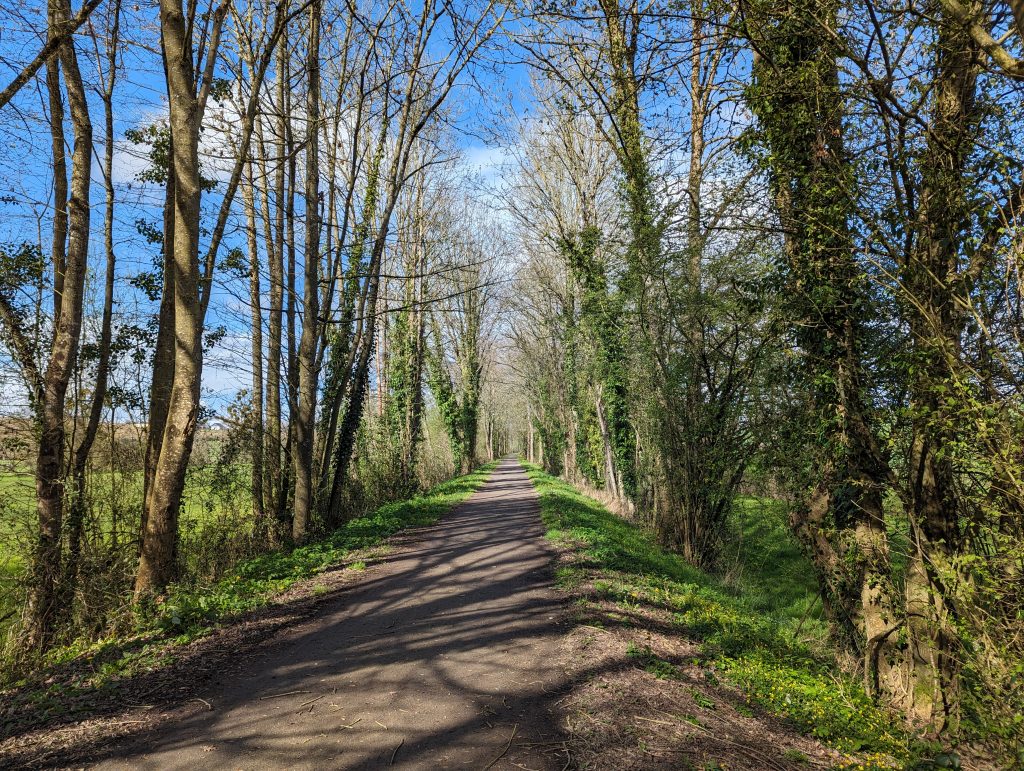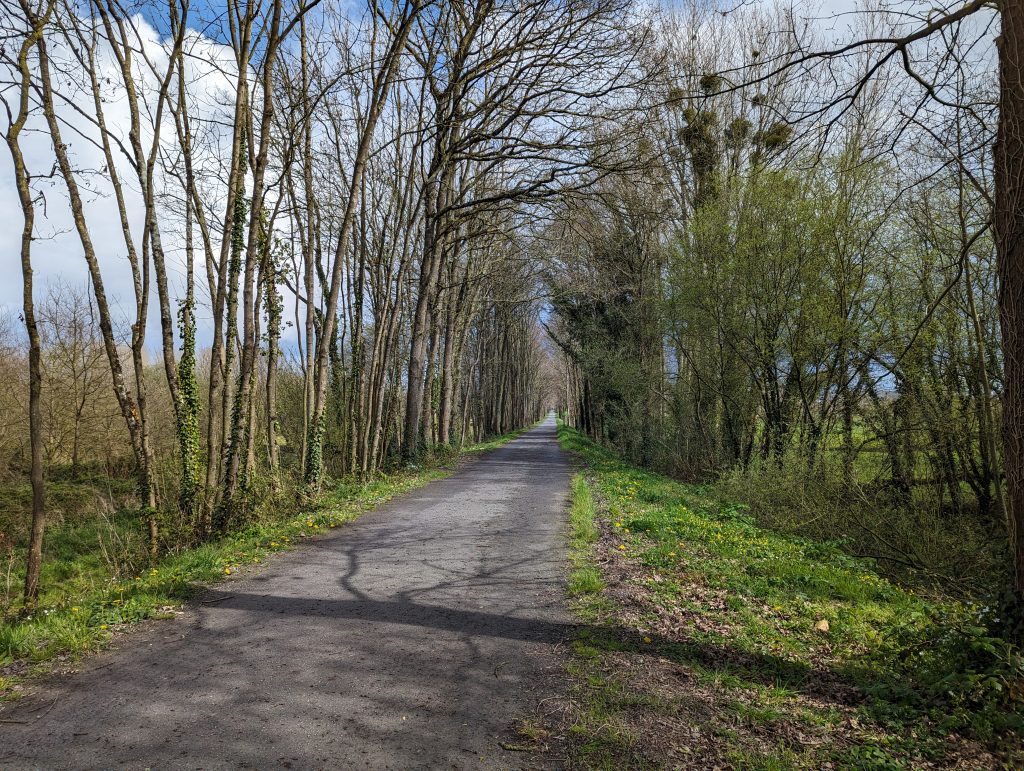 • The first 10 kilometres fly by, partly thanks to the very flat Voie Verte paths, which are great for relaxed walking, and partly thanks to our conversation about a wide range of topics.