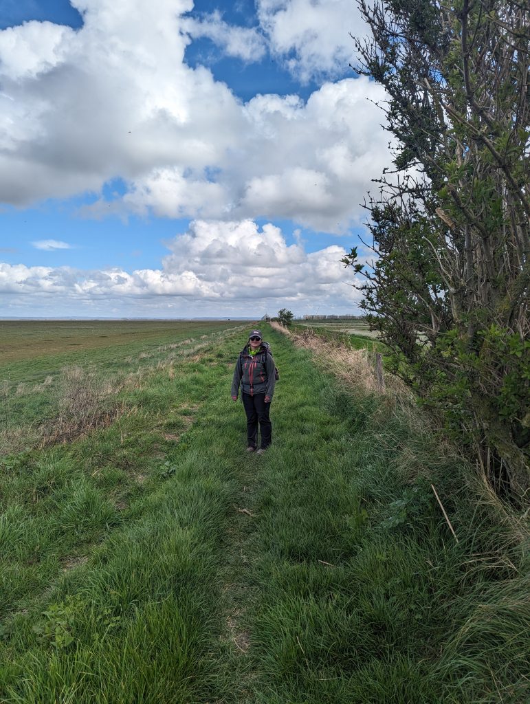 • Running back and forth 5 times to fill the thermos, sighting another hiker and off we go over the crowded bridge and along the sea through polder landscapes full of sheep.