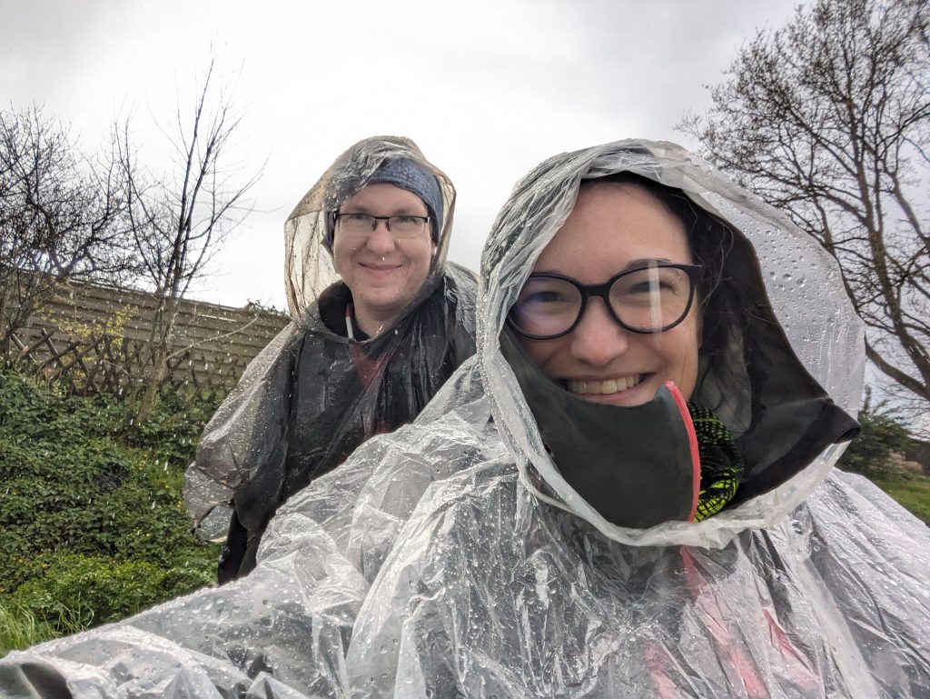• We don’t see how it’s going to get any better later and we need a break, so we prepare ourselves for a quick meal with ponchos in the rain.