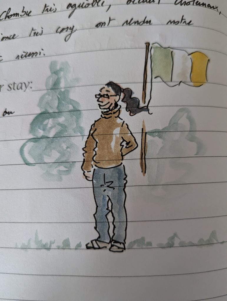• So we don’t set off until half past ten – although not much later than usual – of course not before taking a selfie in front of the Irish flag.