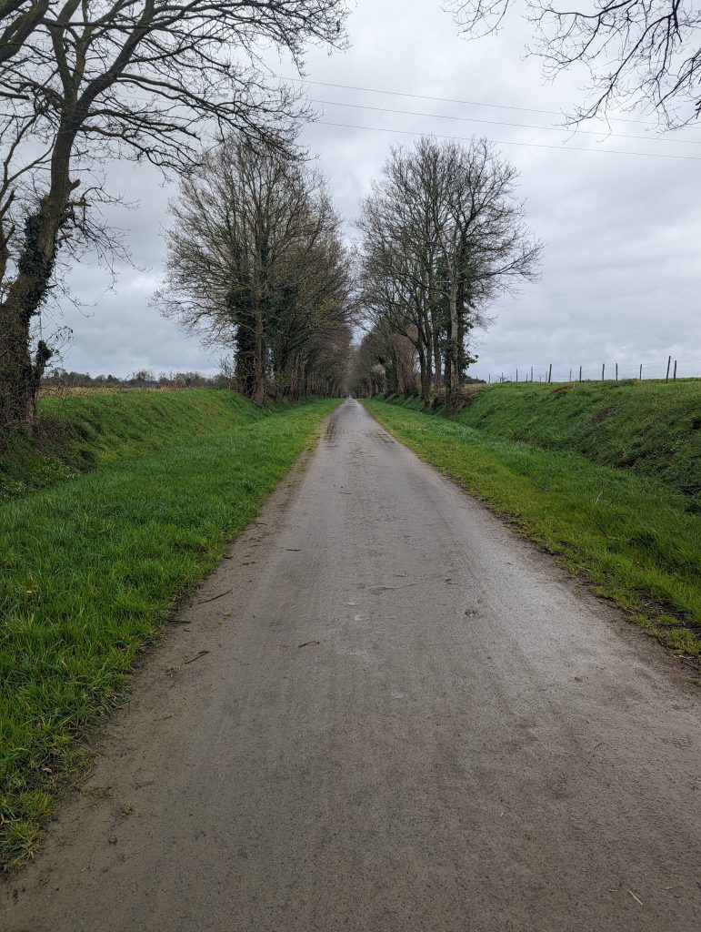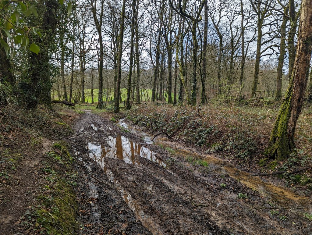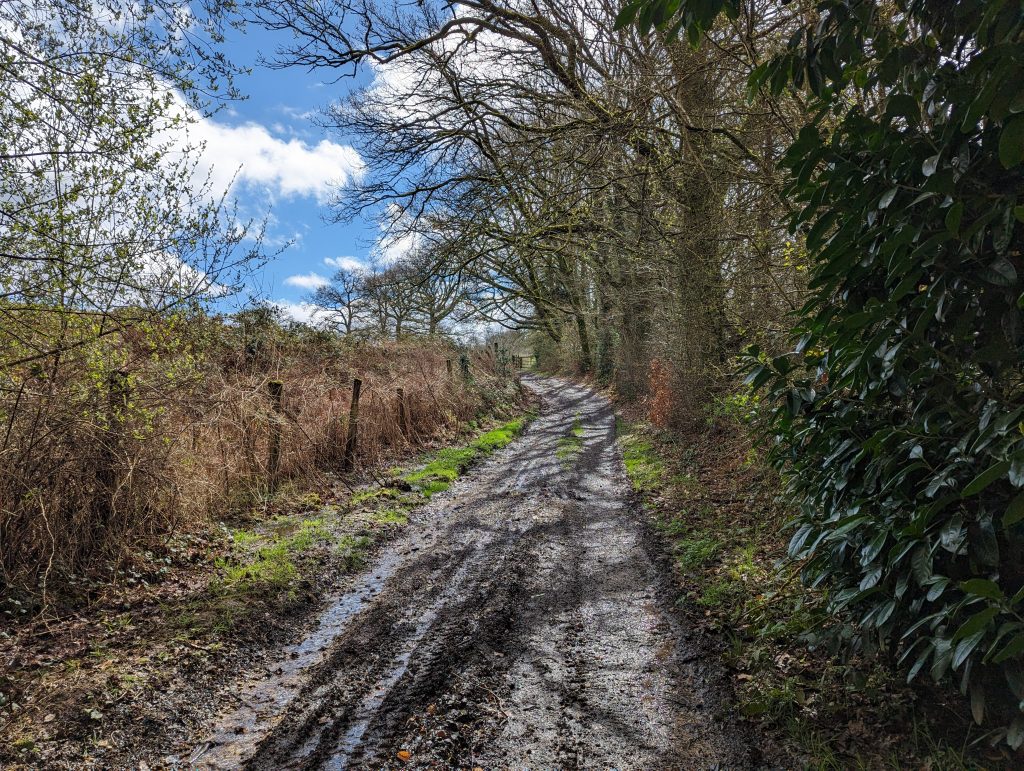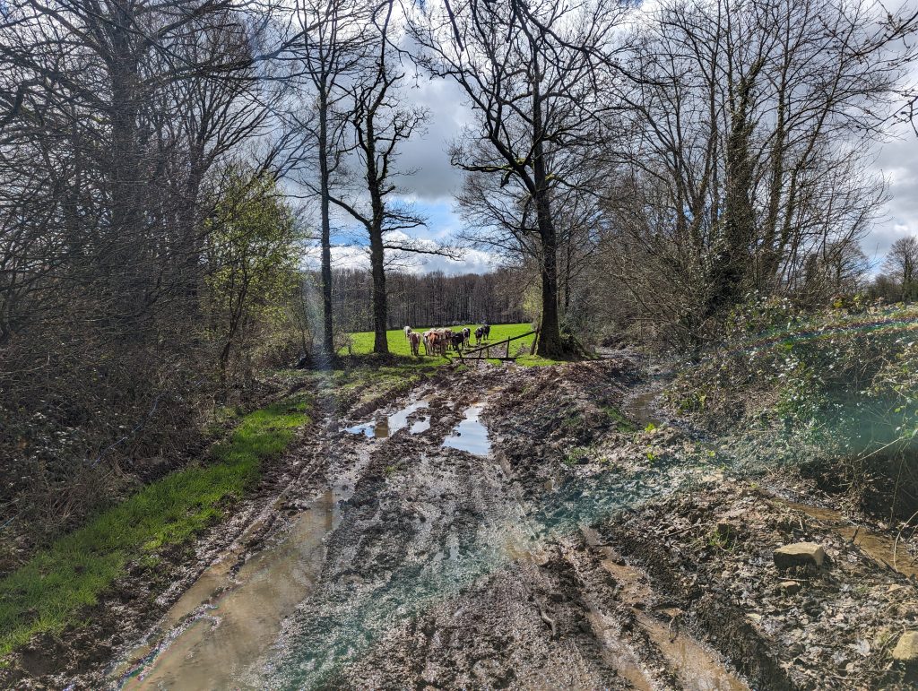 • We continue along country lanes towards the sea, all of which are totally muddy.