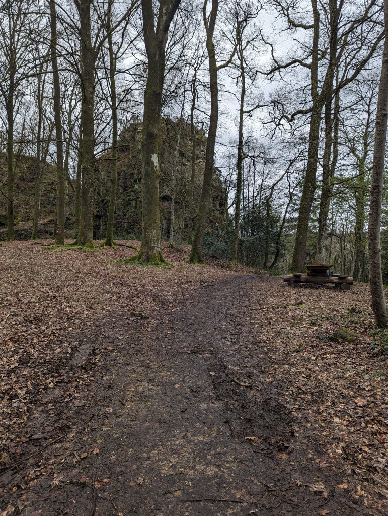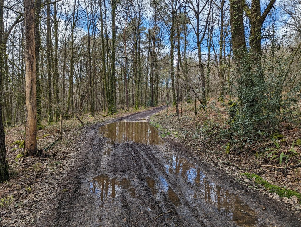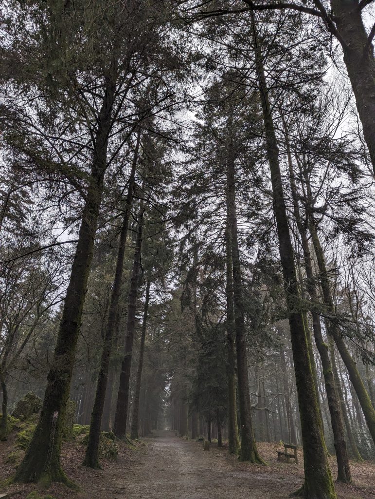 • And continue through a gloomy forest, initially on quite good paths, which become increasingly muddy.