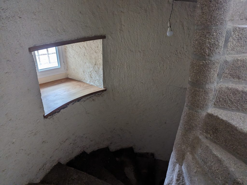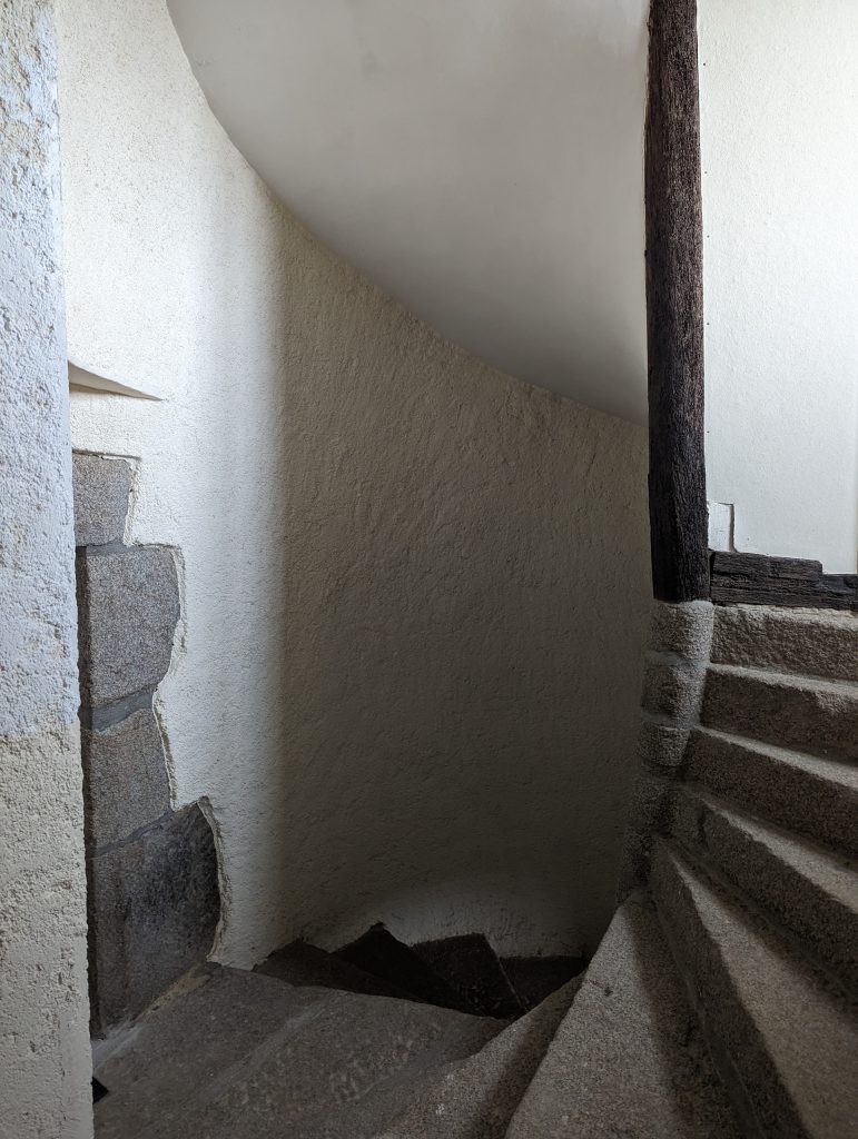 • In this hidden tower, there is a spiral staircase that takes us to our room with high walls, chandeliers, stucco decorations on the ceiling and thick walls that merge into each other in a labyrinthine fashion.