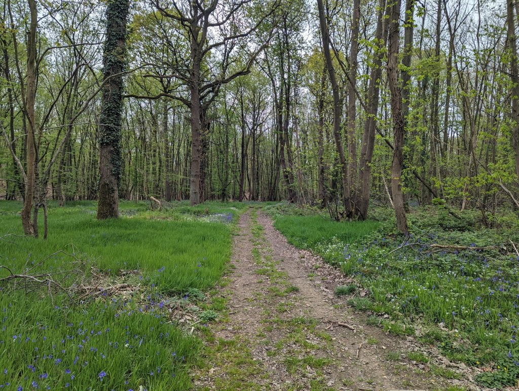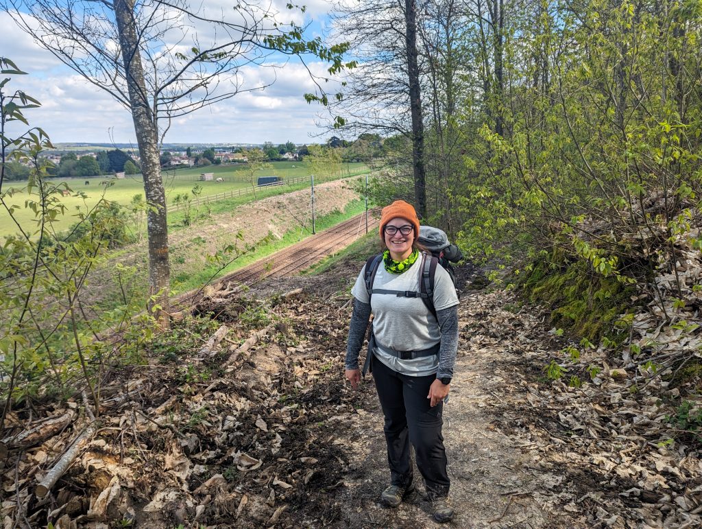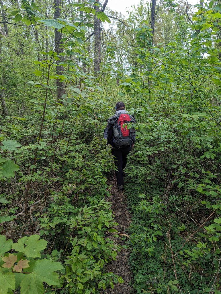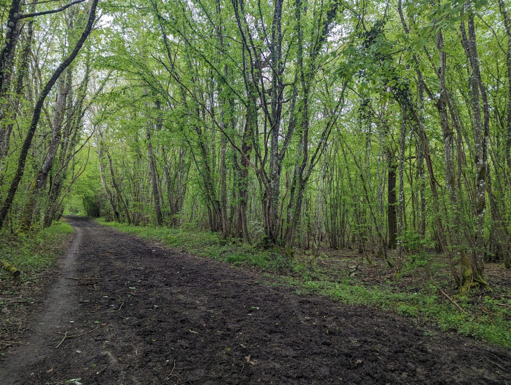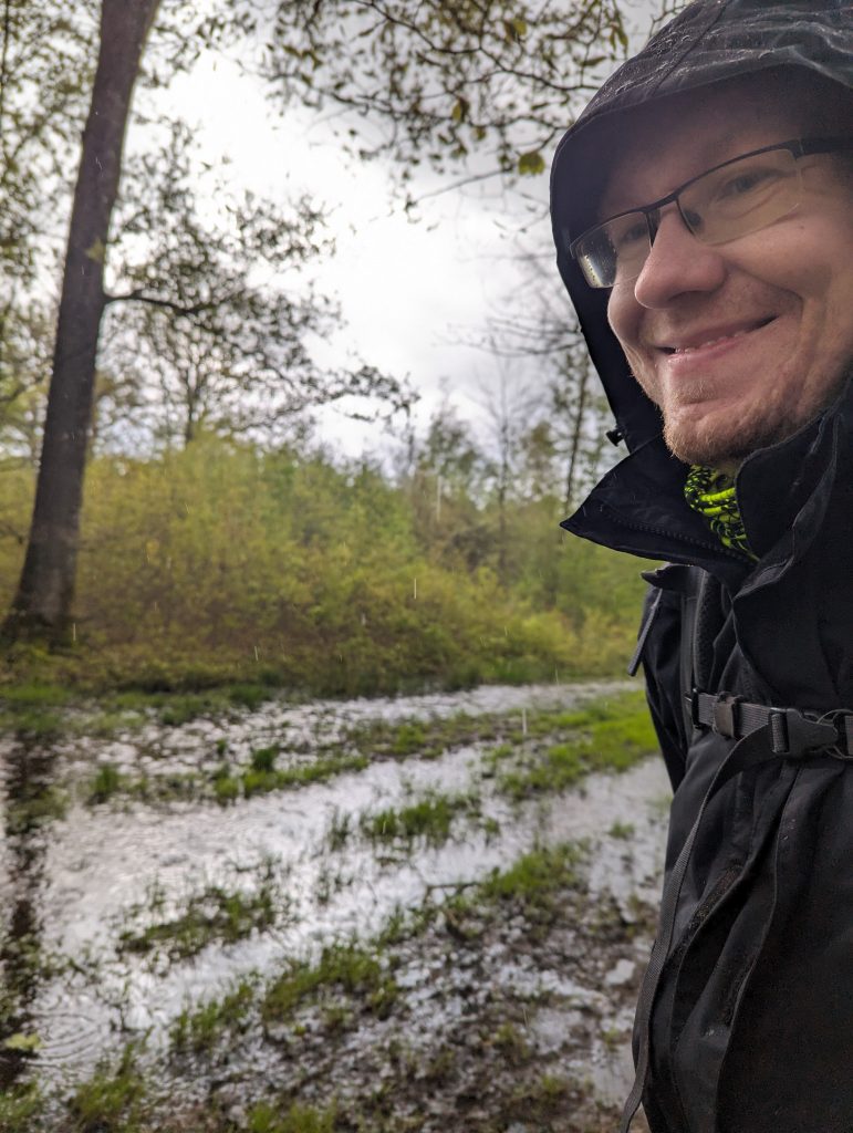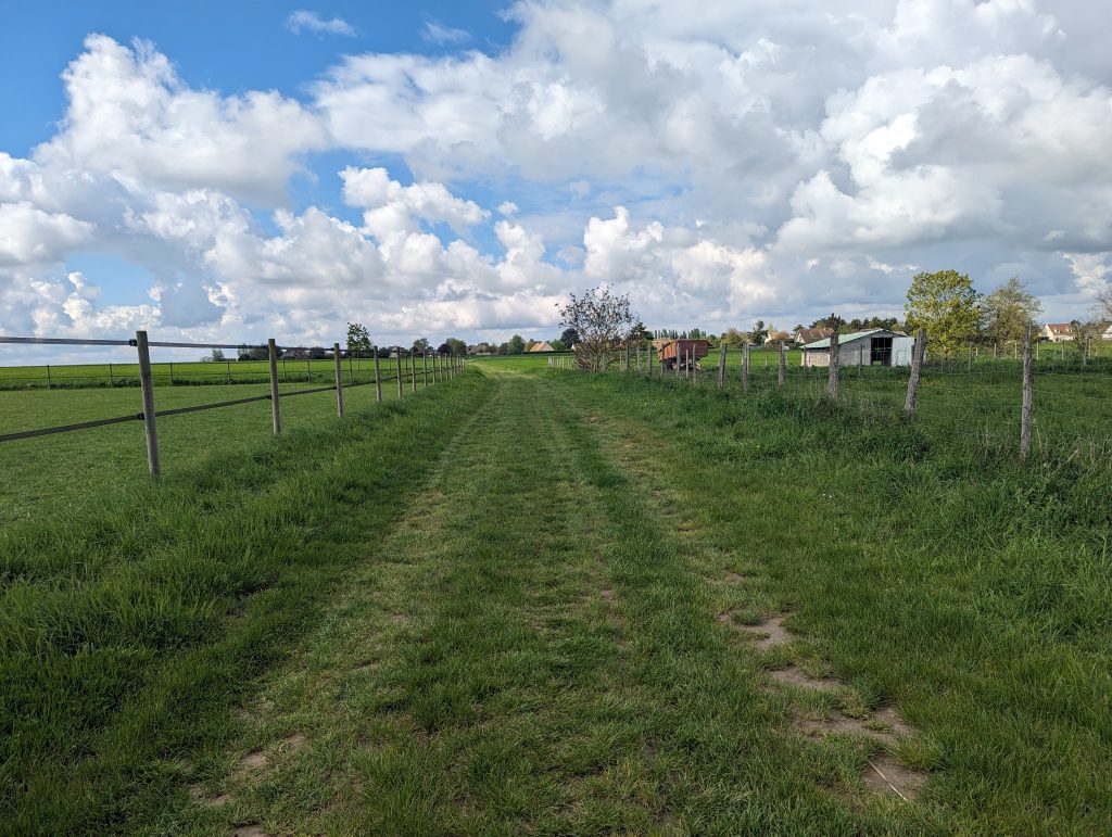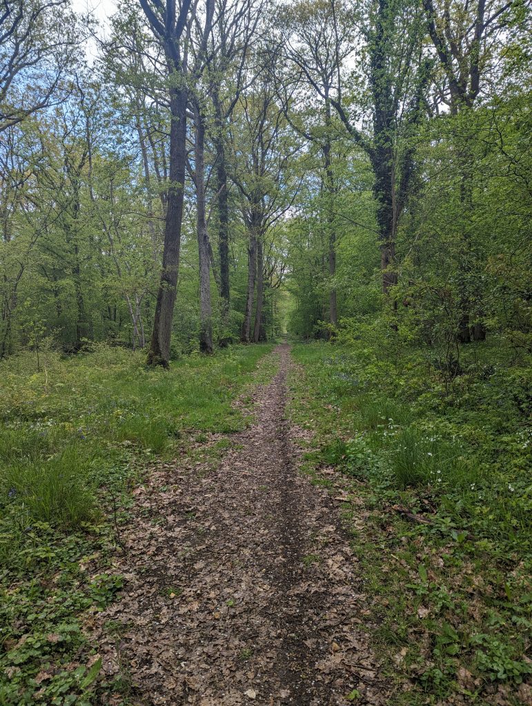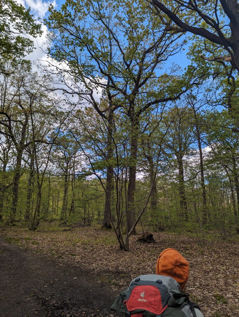 - In real April weather, we finally start our stage across fields and along a railway line, following our own intuition (always a good idea) and taking the dirt track instead of the road, which forces us to make our way through the thicket in the forest at the end.