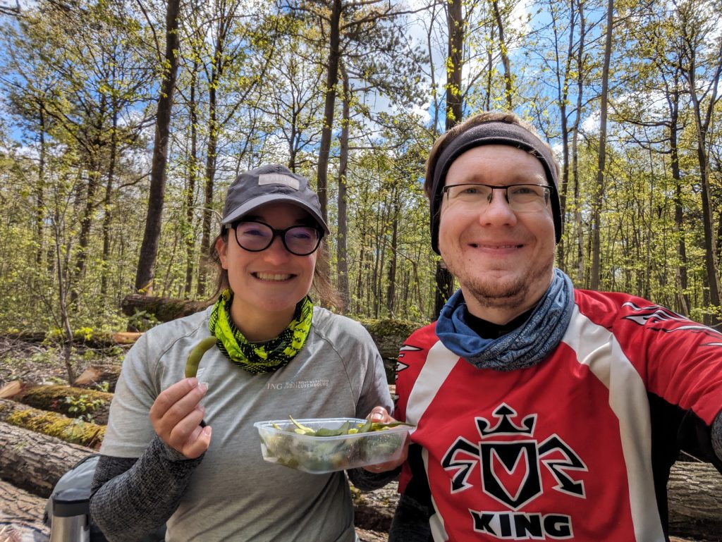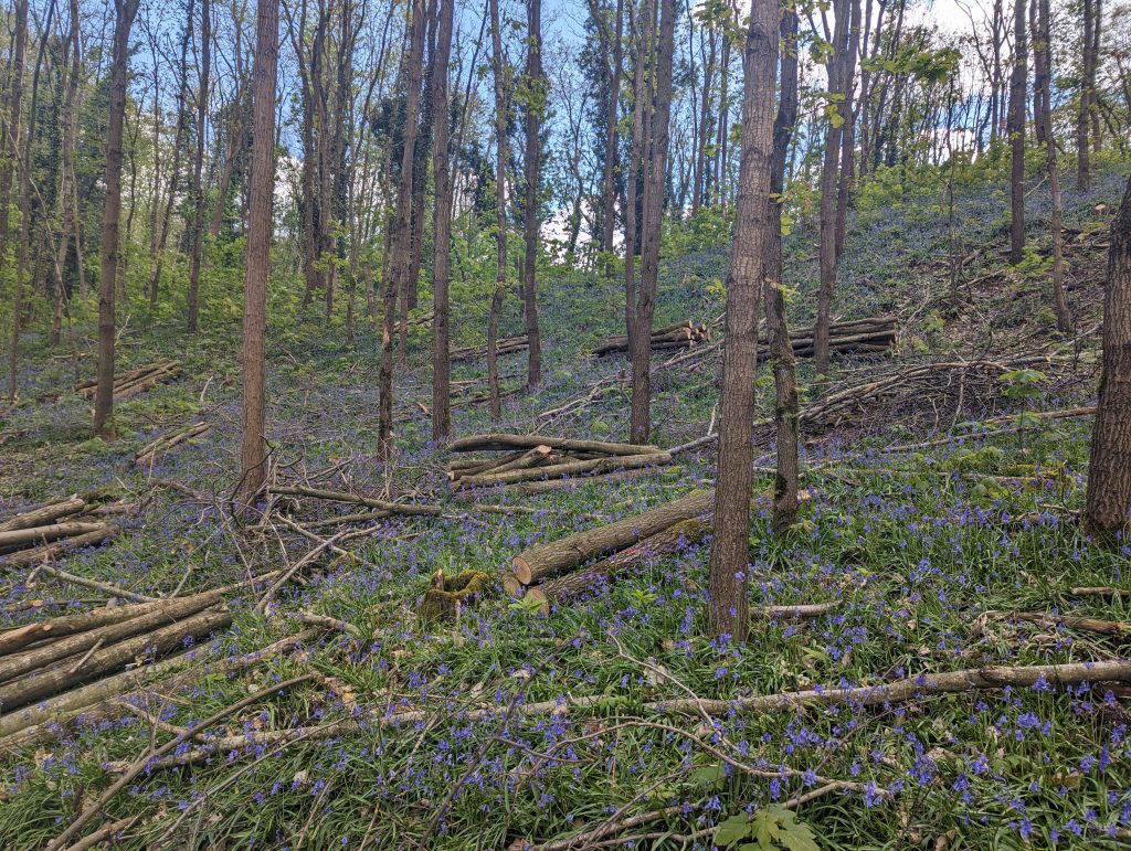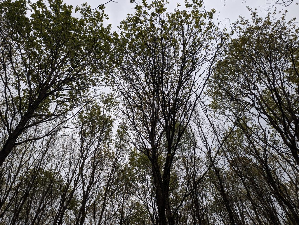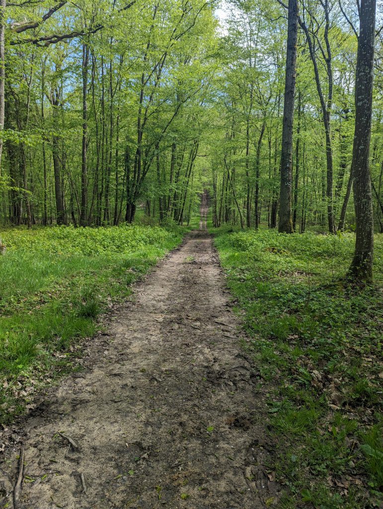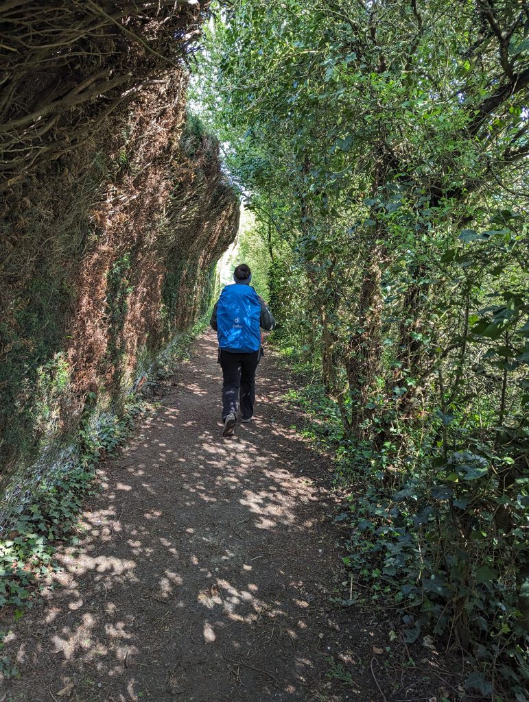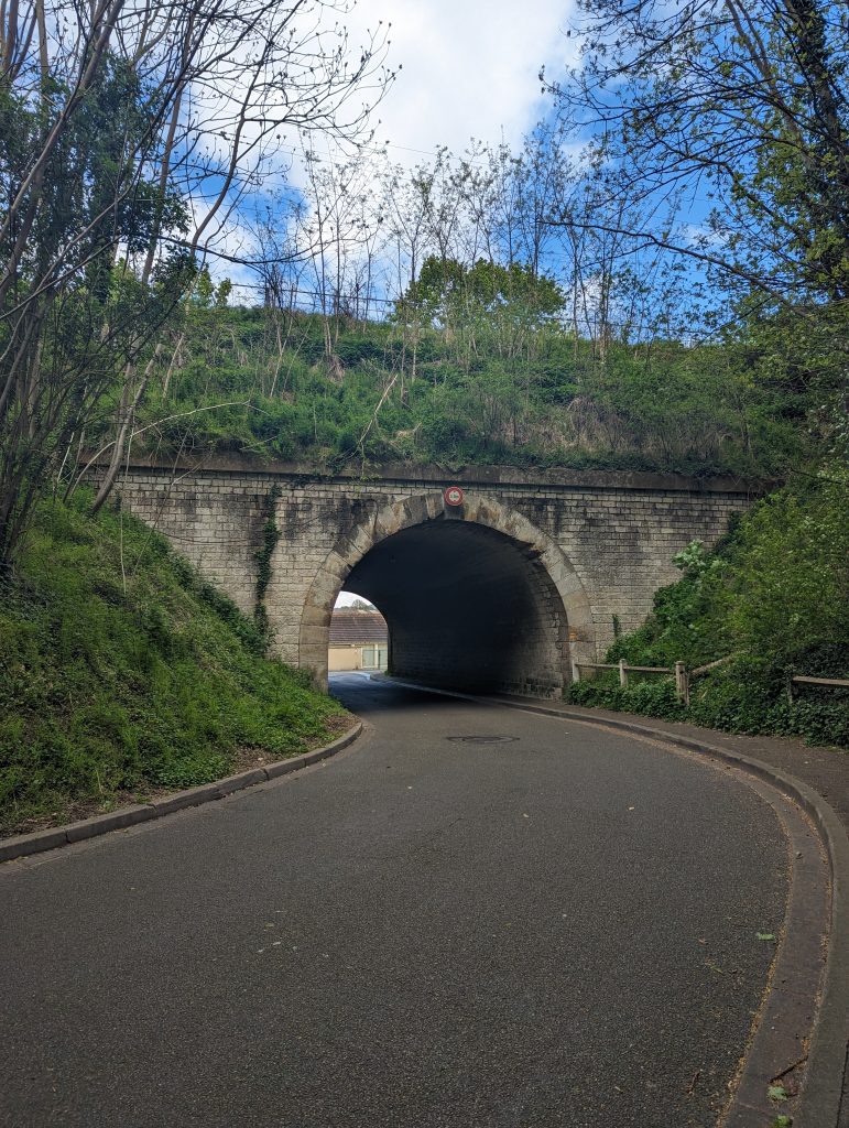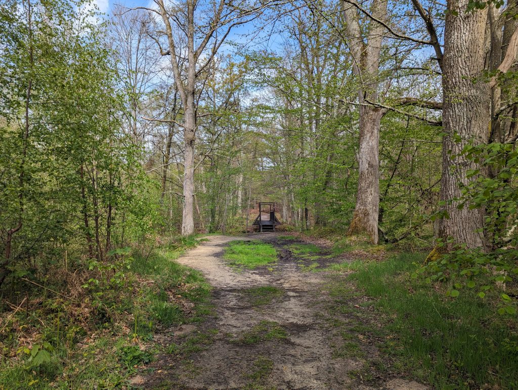 - In real April weather, we finally start our stage across fields and along a railway line, following our own intuition (always a good idea) and taking the dirt track instead of the road, which forces us to make our way through the thicket in the forest at the end.