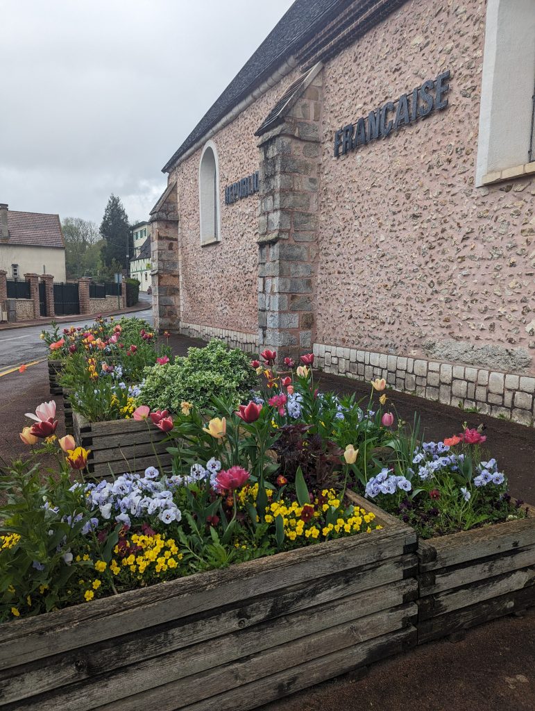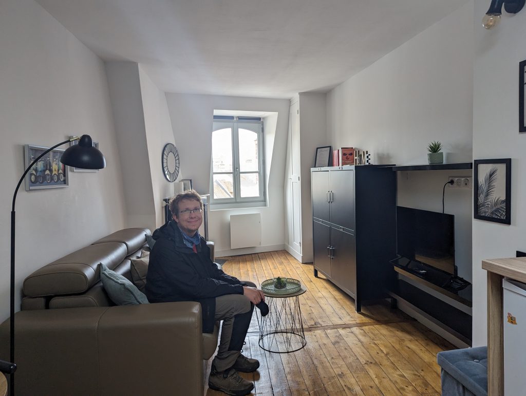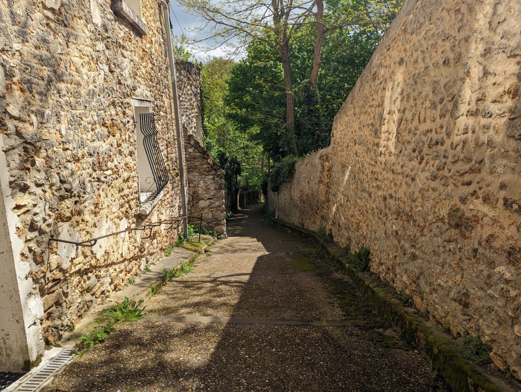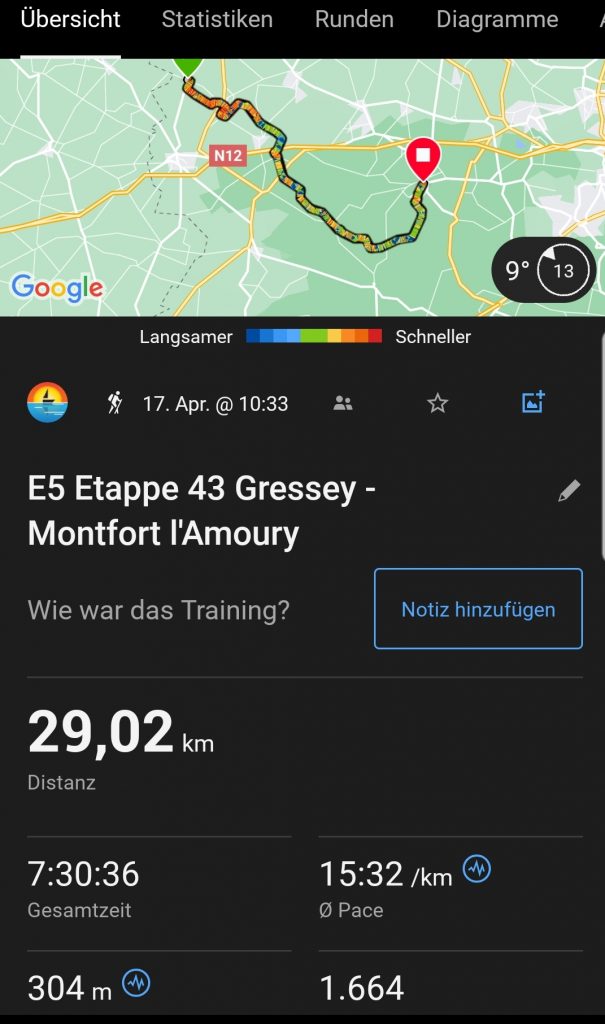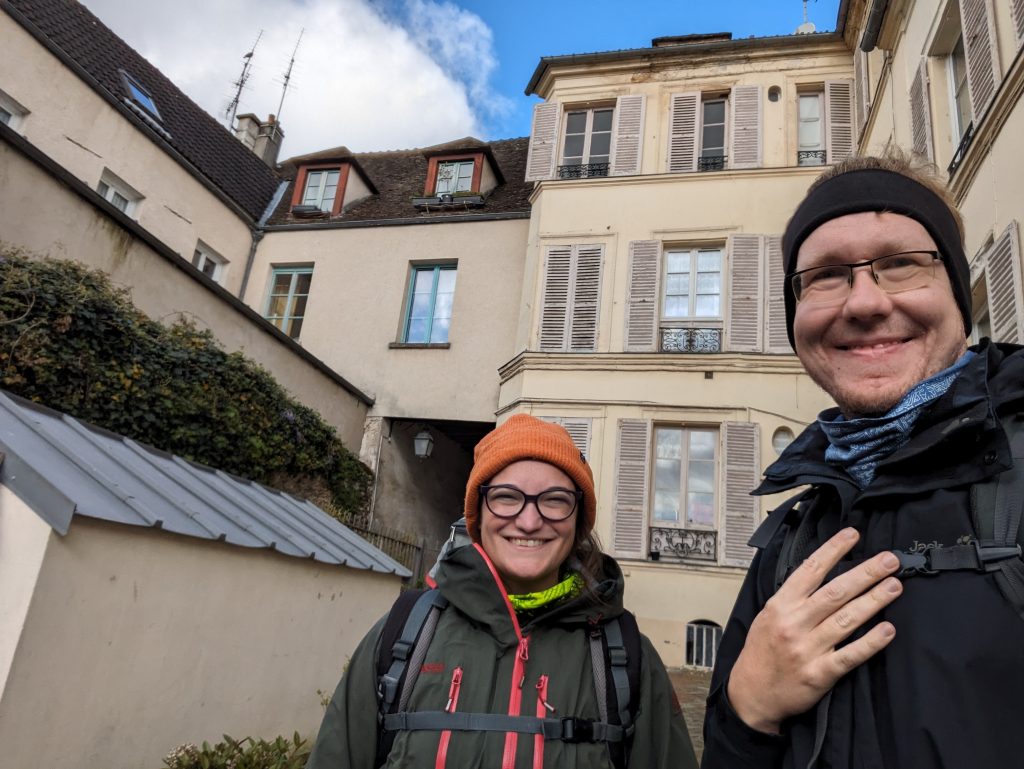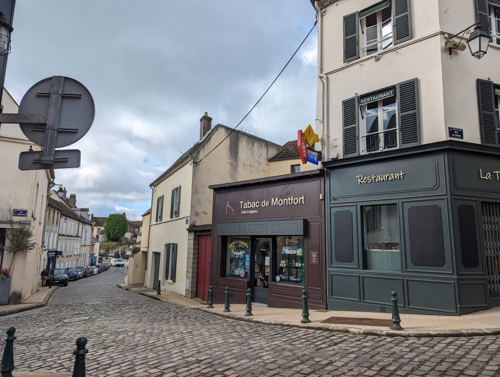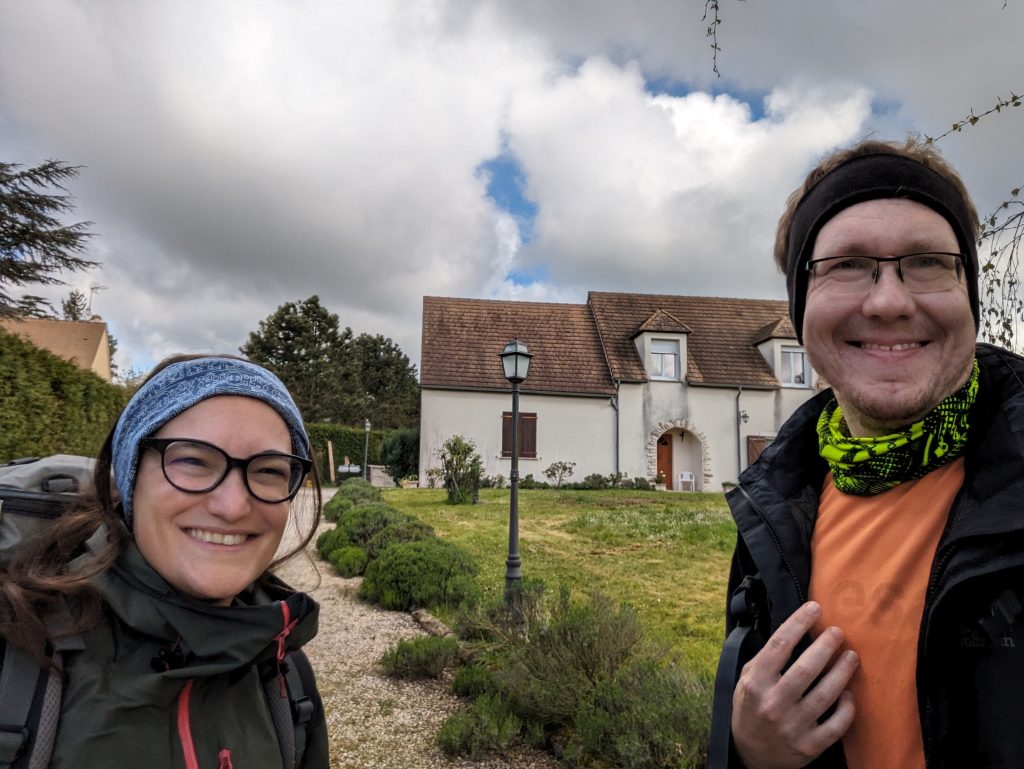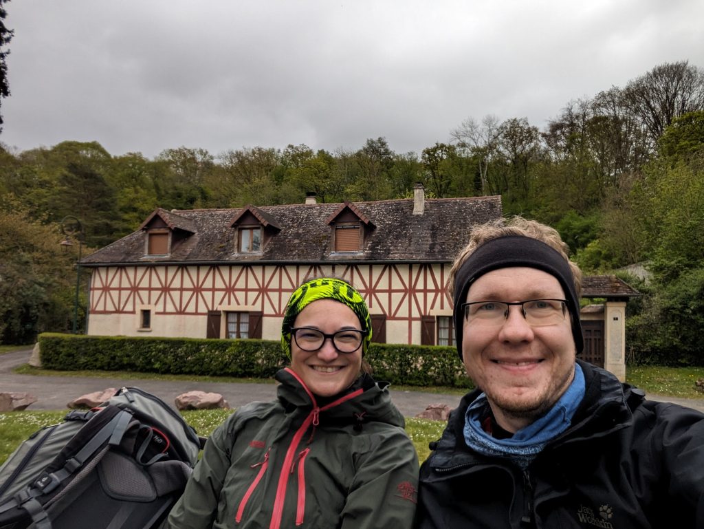 - After almost 30 kilometres, we reach the village of Montfort l’Amoury, which once again has a very beautiful old town centre, and find our accommodation (thanks to a really good description) straight away in the backyard in a semi-basement.