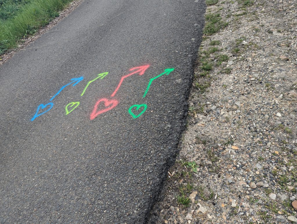 - A car drives past us with a trailer carrying a lawnmower tractor with a red cover. This very cover comes loose and is now being towed behind, attached to the trailer only by a string. We are wondering whether and how we should draw the driver’s attention to this when the cord tears right before our eyes and the red cover skids across the road onto the opposite side of the street – directly in front of a camper van coming from the opposite direction. We get a huge fright and think we’re about to witness an accident, but thank God the cover continues to slide across the road – aaah, straight towards us! We are briefly shocked again by the thought of being hit by a lawnmower cover, but thank goodness it skids right in front of us into the grass verge between the road and the cycle path and comes to rest there – right in front of us. The car continues unperturbed, the driver probably hasn’t even noticed, only the camper van driver looks a little startled.