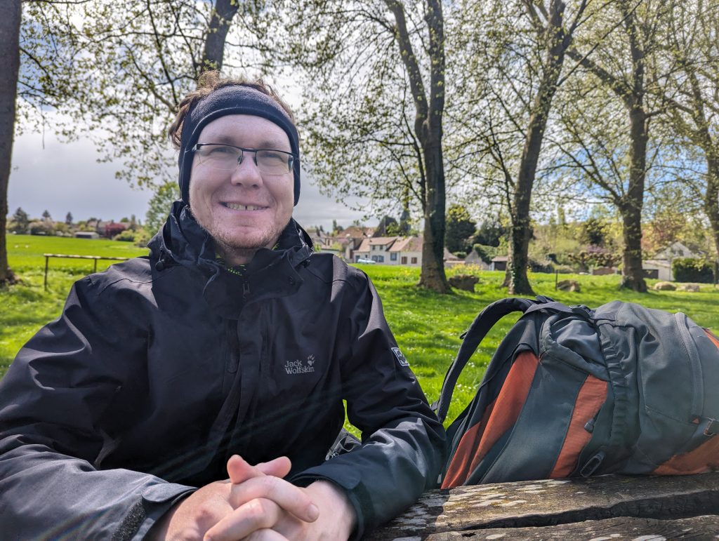 - For a break we discover a place with a bench and table near a small village, which is super cosy – it even comes with a playground (some people never stop being children)!