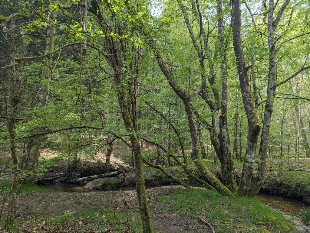 - Still, the forest is beautiful, especially as the start of spring is making its appearance in every corner: Fresh green buds are forming on the tree branches, fruit trees are blossoming and lush purple flowers are sprouting from the forest floor.