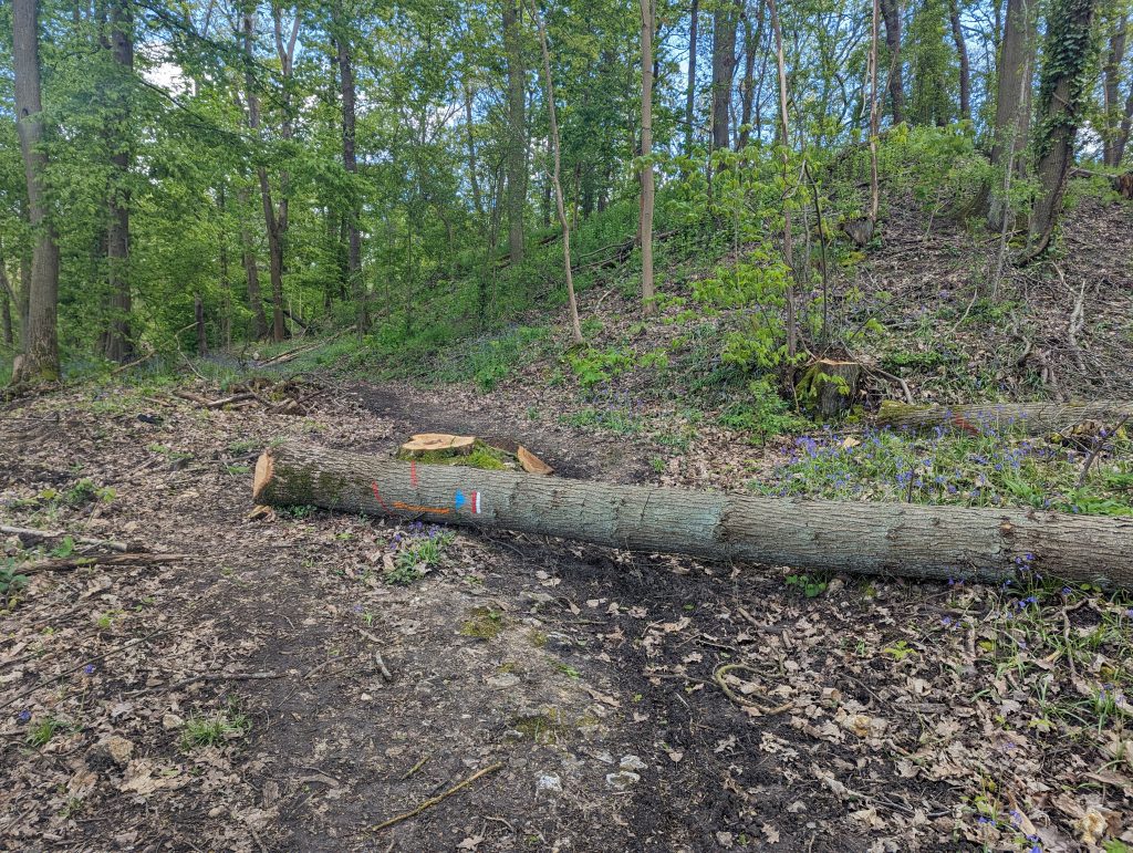 - Apart from that, the hike through the forest is not so nice, because apparently the forester has a massive problem with hikers – at least he has consequently cut down all the trees with a marker on them and left them lying across the path..