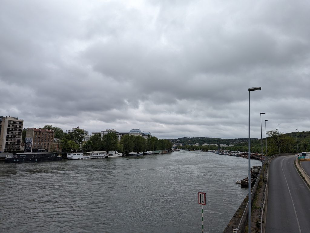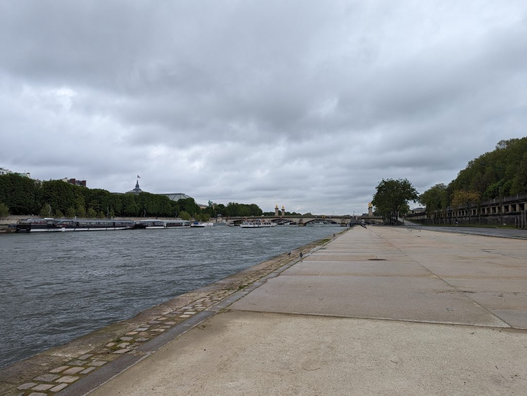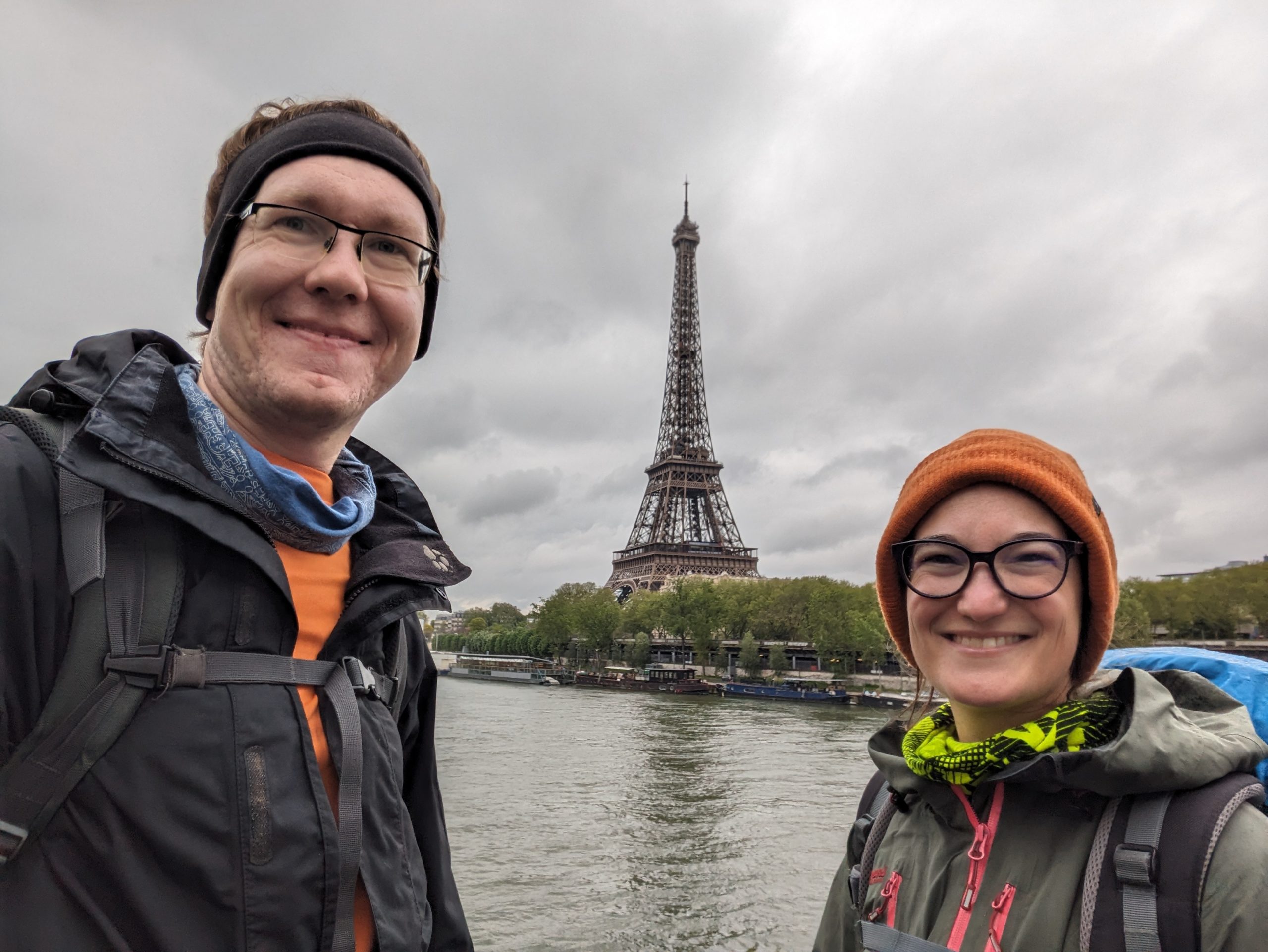 - Finally – although we already saw it from a distance yesterday – the Eiffel Tower appears on the other bank of the Seine! Yeah!