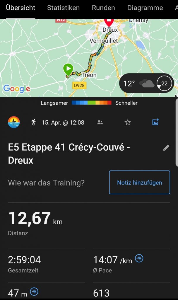 - Dreux really is one of the larger towns we pass through on the E5 and gives us a shock at first with all the people, cars, noise and hustle and bustle – we are no longer used to that after the national park stages!