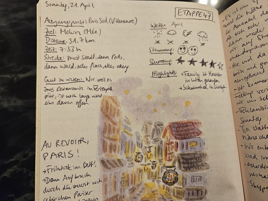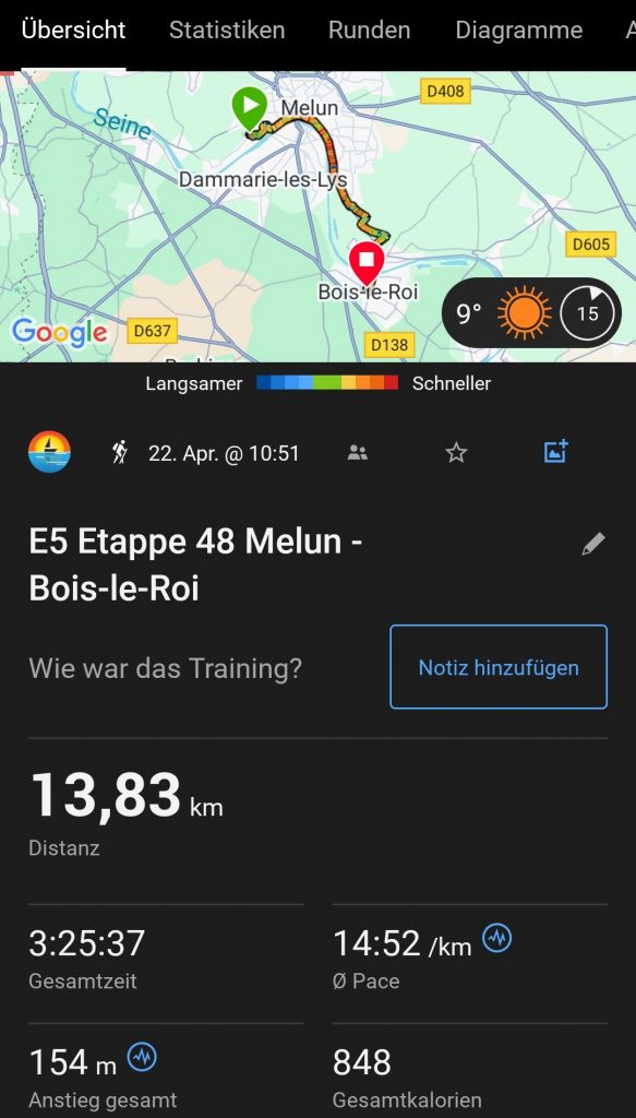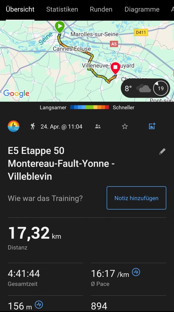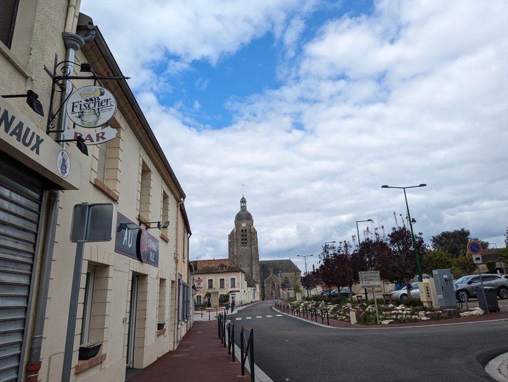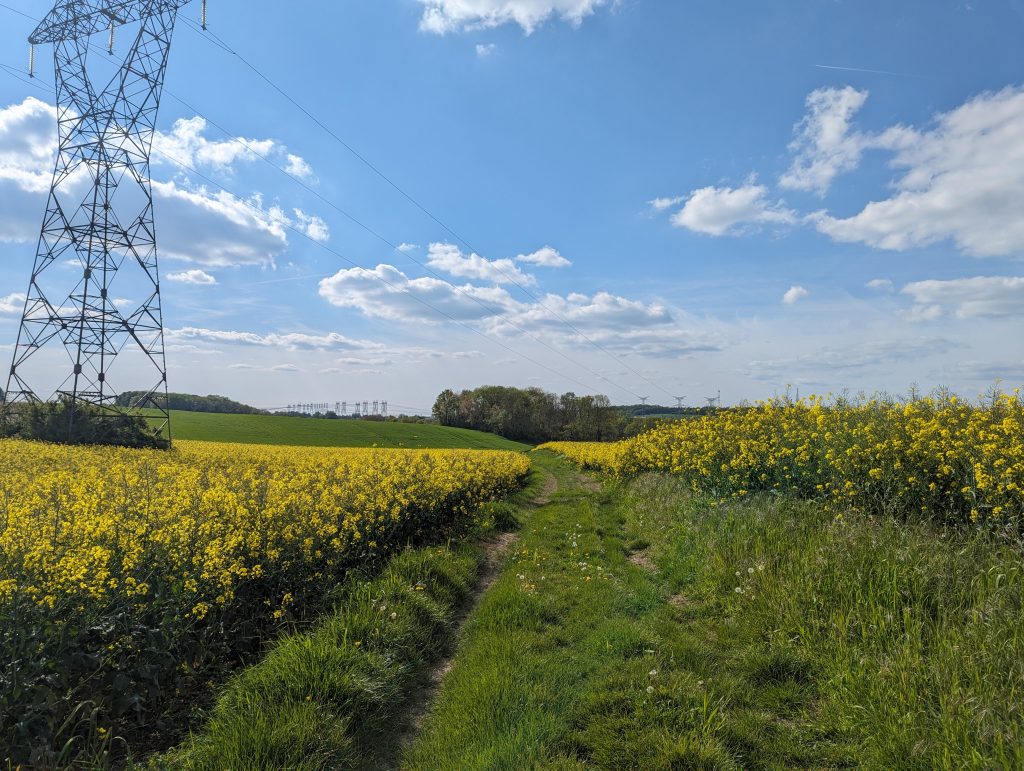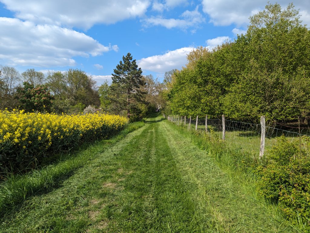 - The route continues across yellow blossoming rapeseed fields (they’re back!) and with great views of the surrounding landscape, which is rather green and dominated by fields, until we finally reach the next larger town – Montereau-Fault-Yonne – where our accommodation for today is located.
