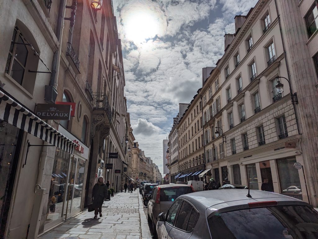 - We walk along the Seine towards Notre-Dame and pass through the Saint-Germain-des-Prés neighbourhood on the way there, with its charming cityscape full of little alleyways and the famous ‘Shakespeare & Company’ bookshop – probably the only bookshop in the world where there is always a long queue – as there is now.