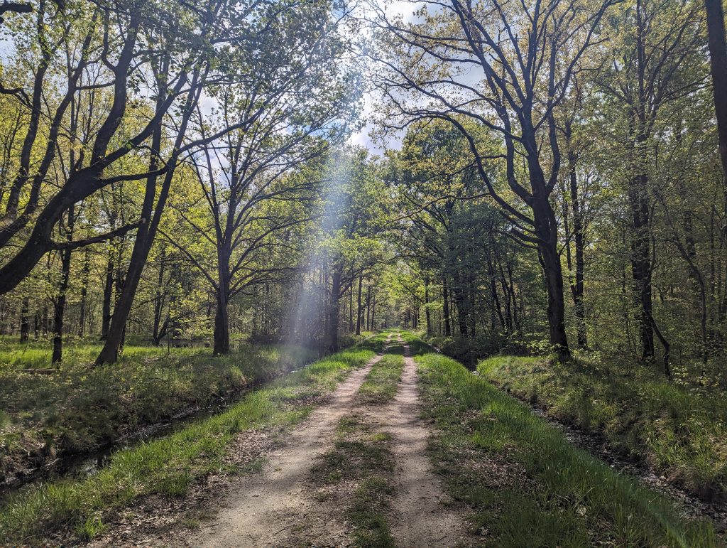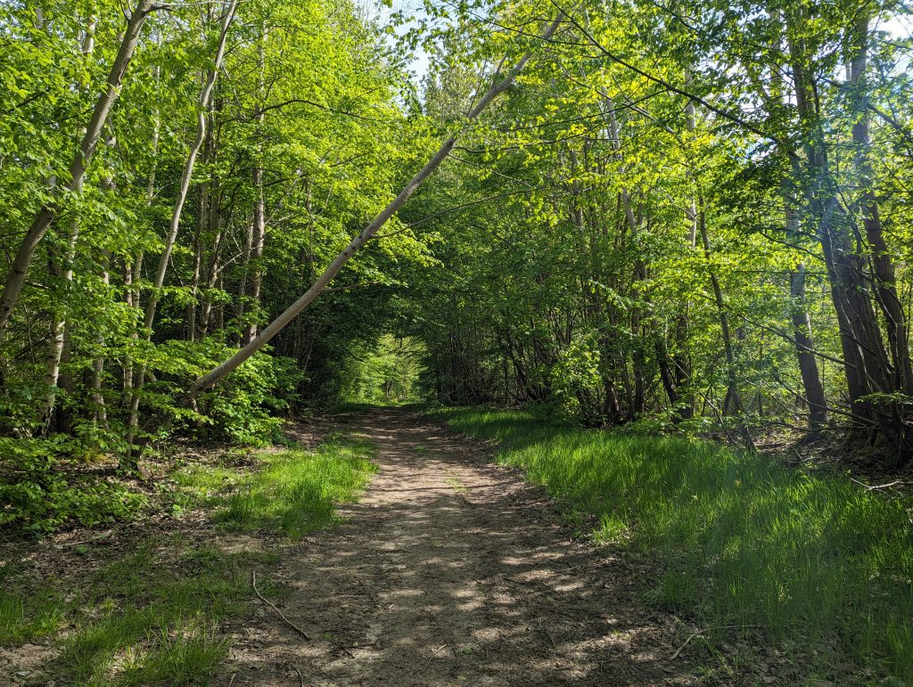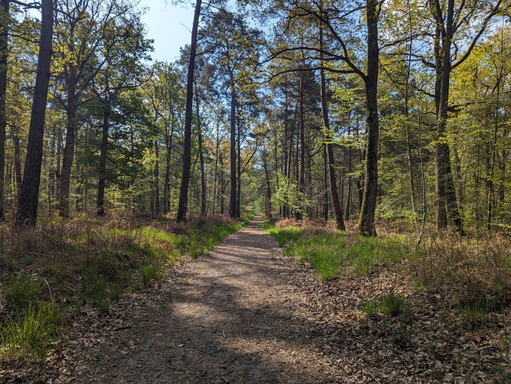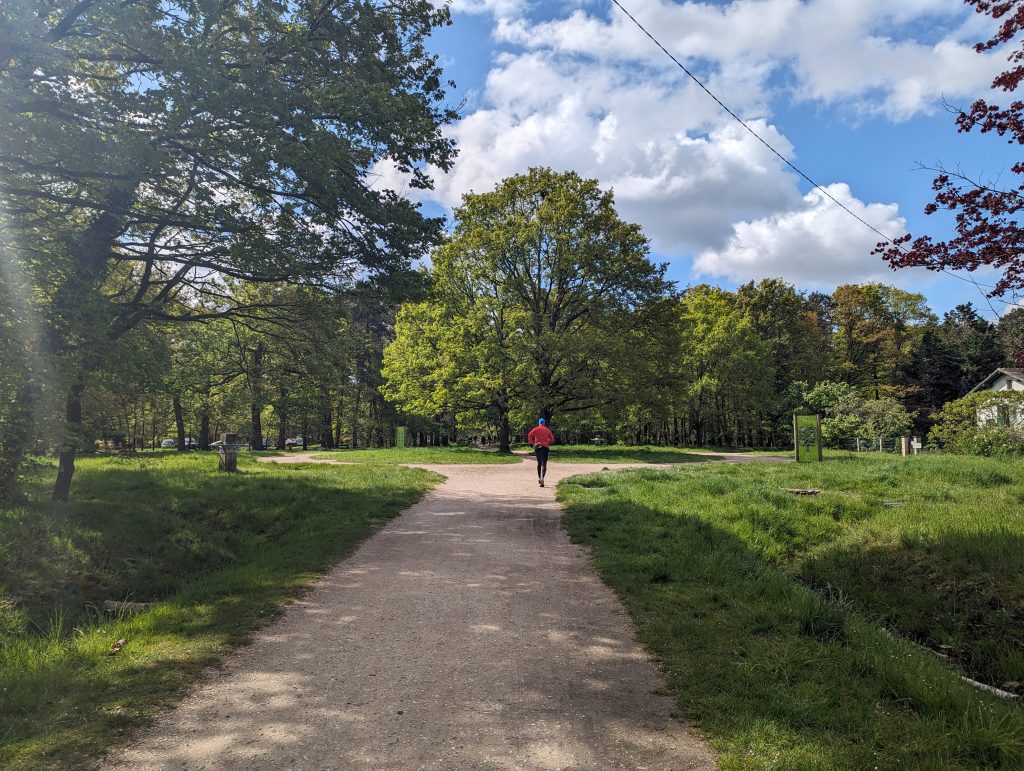 - It’s an exciting mix of paths today: While at first you can still clearly feel the proximity of the city – above all in the number of runners – we later go through sections of forest that feel very far away from any civilisation, after which huge industrial areas appear again, through which we walk on roads so wide that several lorries can easily fit next to each other.