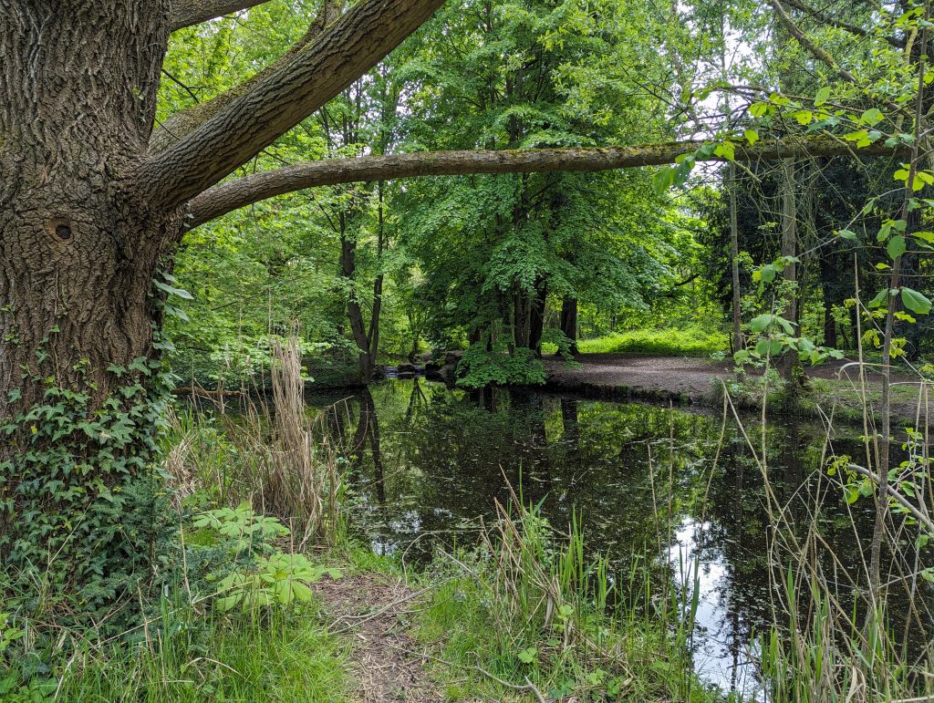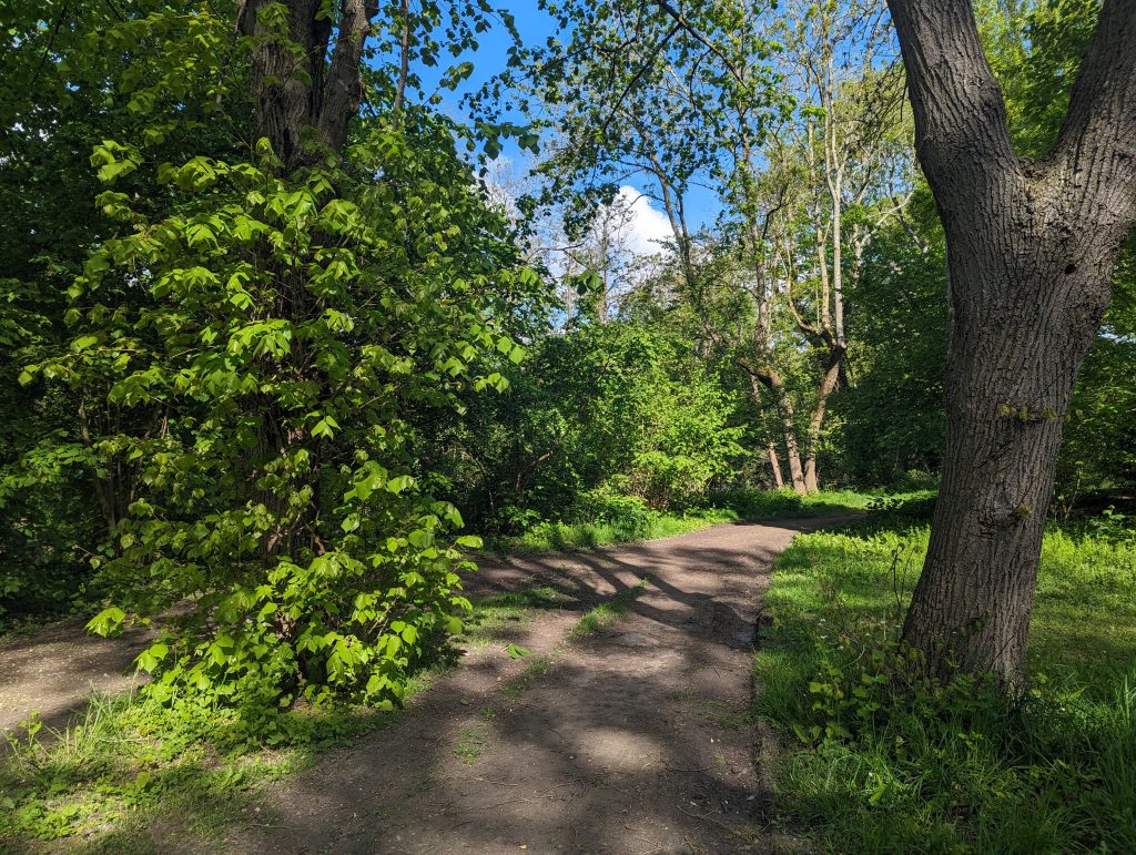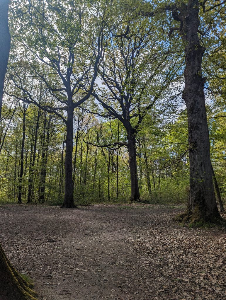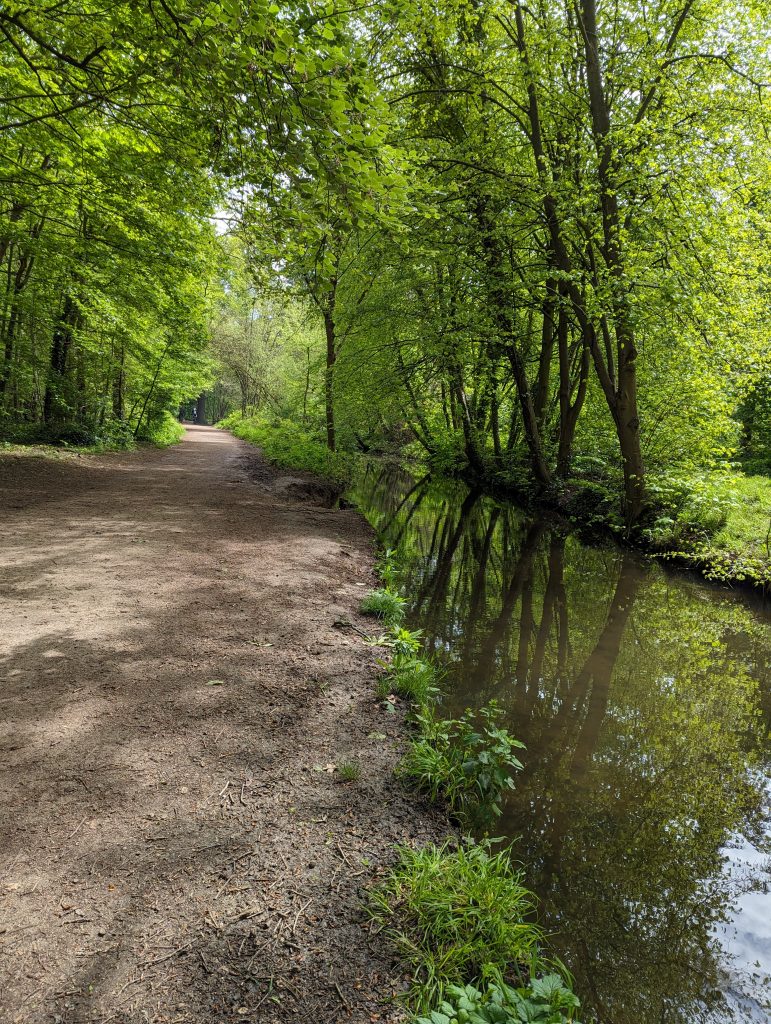 - It’s an exciting mix of paths today: While at first you can still clearly feel the proximity of the city – above all in the number of runners – we later go through sections of forest that feel very far away from any civilisation, after which huge industrial areas appear again, through which we walk on roads so wide that several lorries can easily fit next to each other.