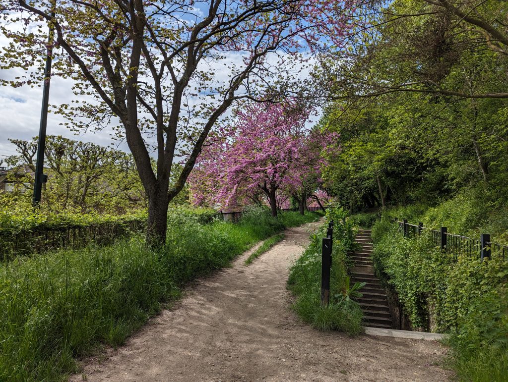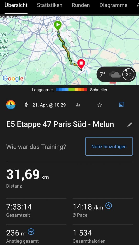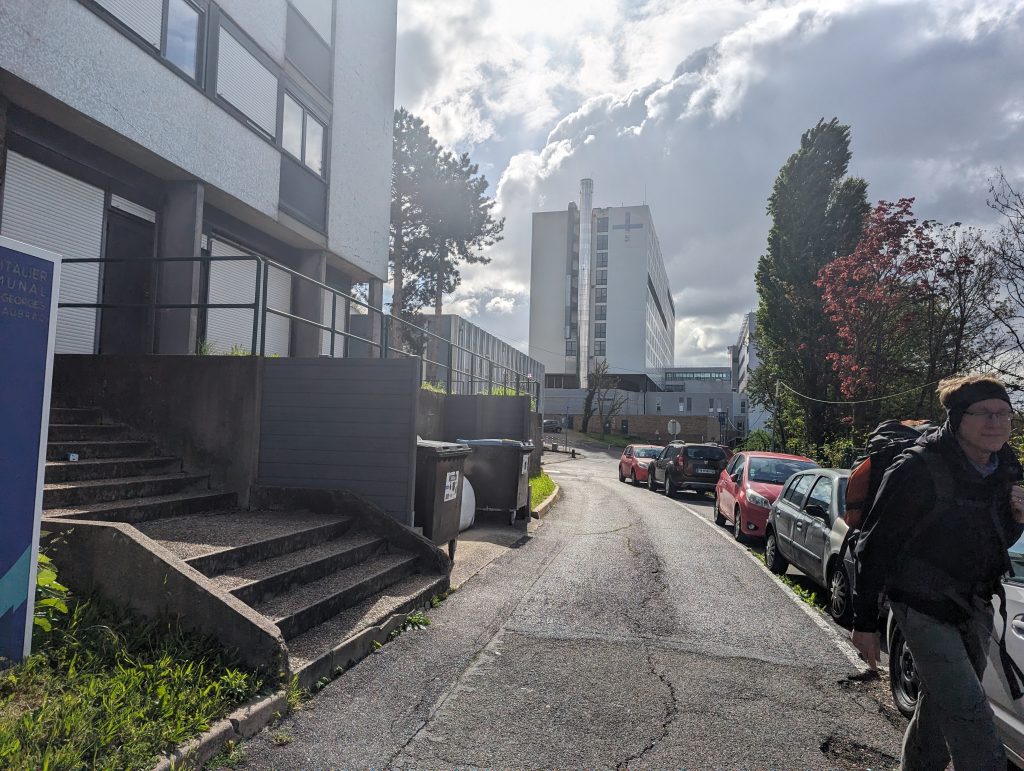 - Then we set off first through the grounds of a hospital, where we’re not quite sure whether it’s okay to just walk through – then through the Parisian suburbs, which at first are still quite small, out into a park that turns into a forest.