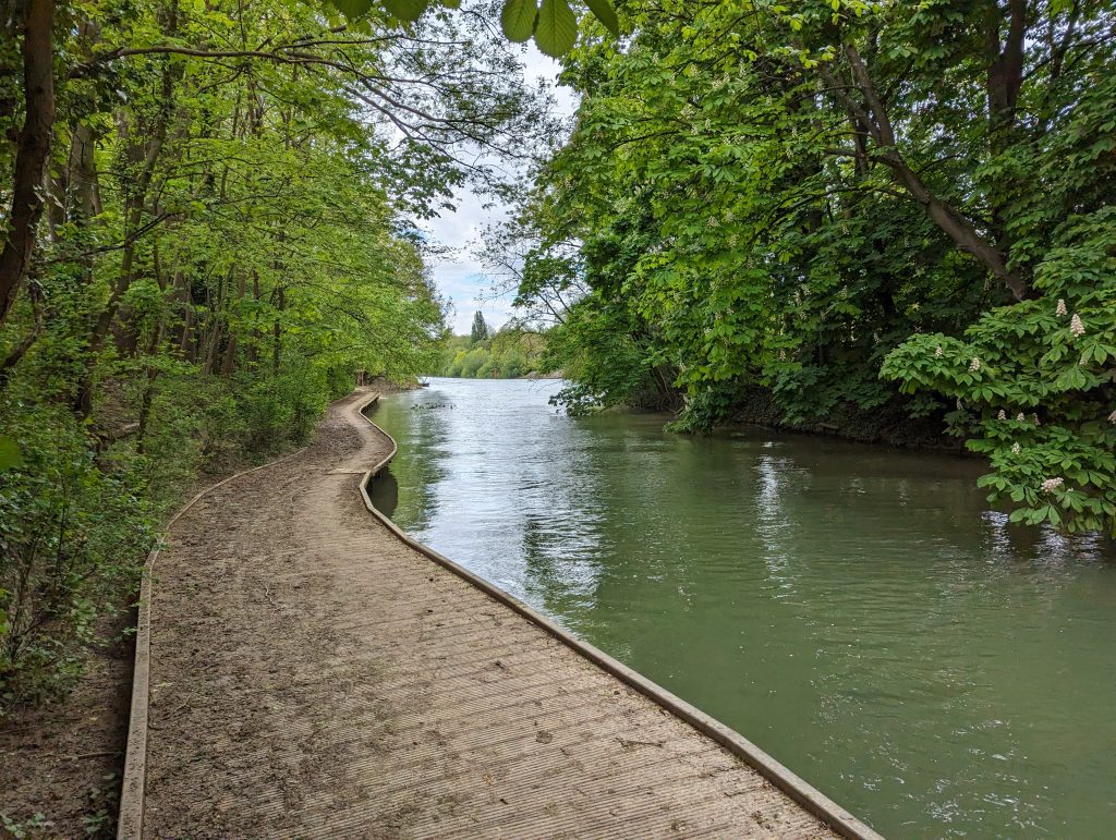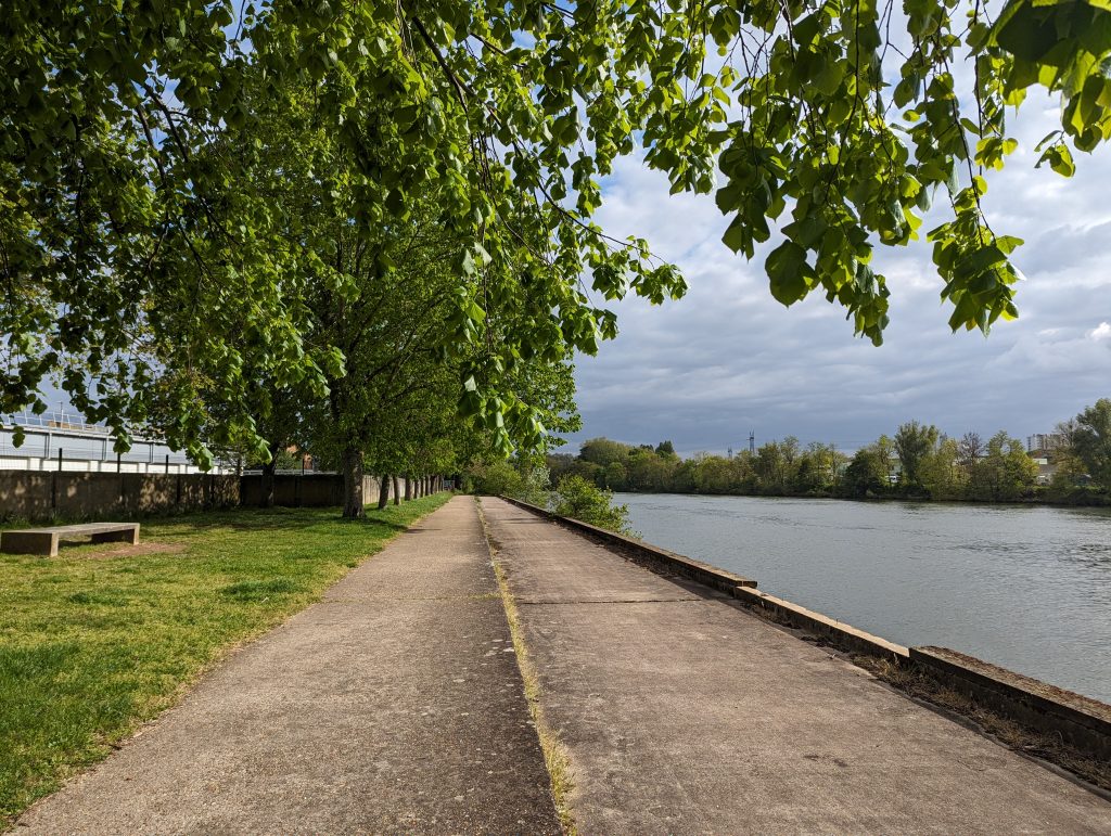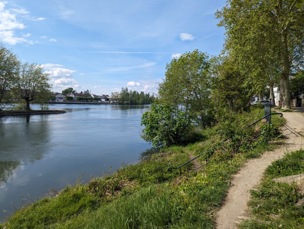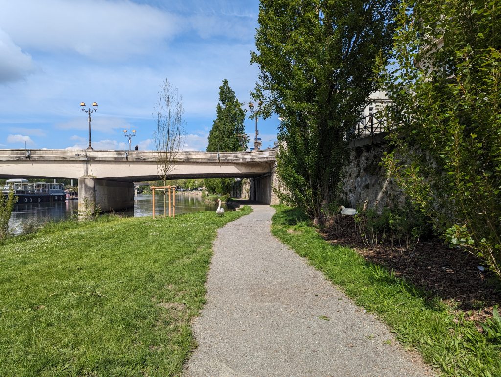 - Via a huge road (contrasts chase each other here), which we cross using a bridge, we reach the Marne, the second major Parisian river, along which an amazingly beautiful hiking trail leads.