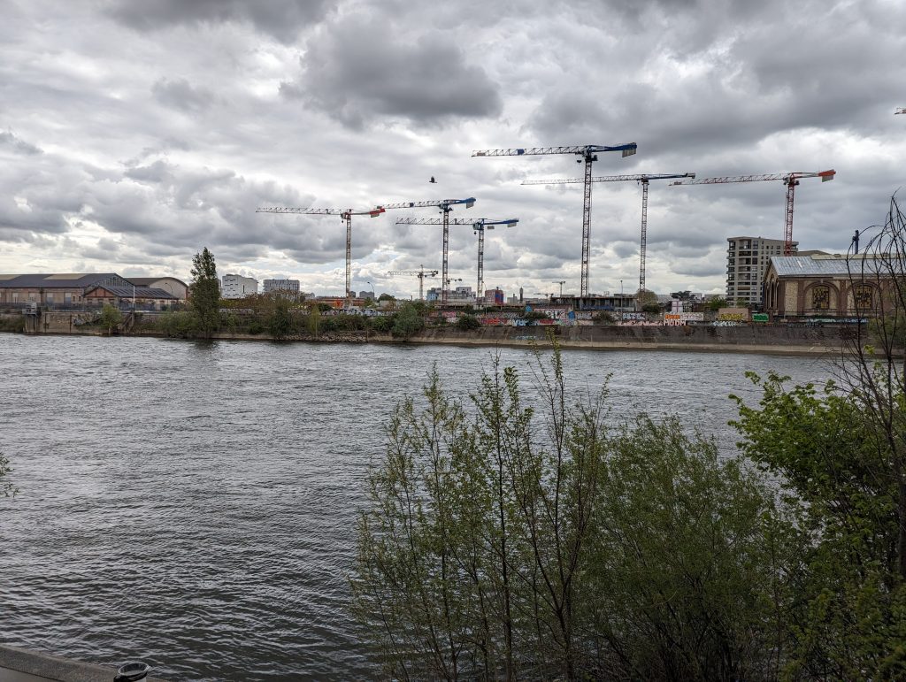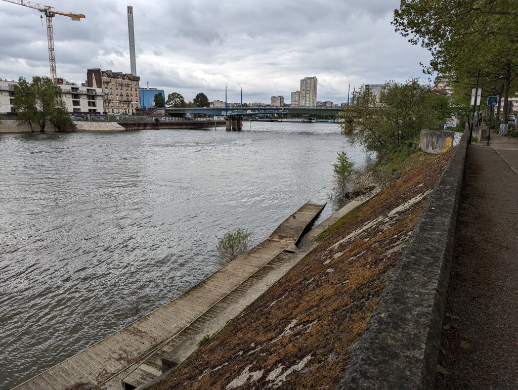 - For some parts of the path we walk along the Seine, where there are again wide and well-used cycle paths, sometimes leading through industrial areas.