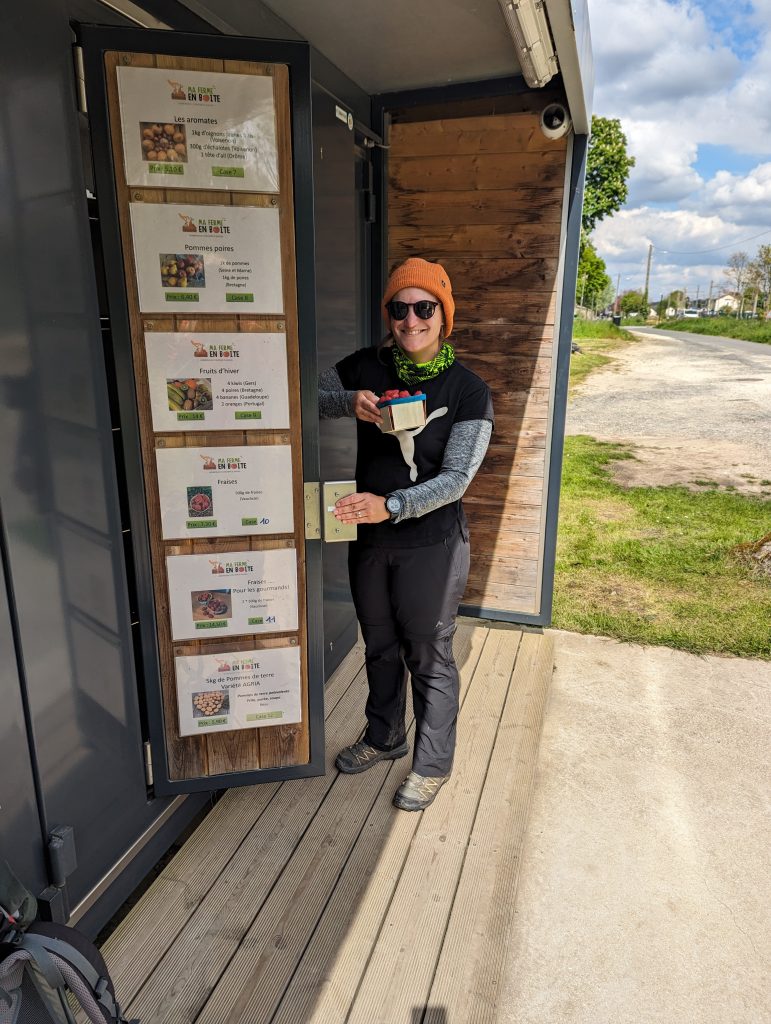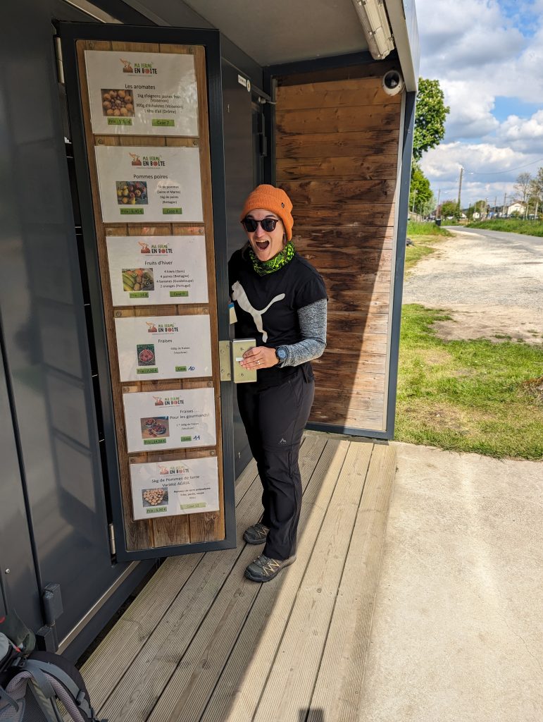 - We walk along a huge roundabout and take the exit towards the supermarket, where we stock up on more food for the next few days and where we are the only people far and wide to arrive on foot – crossing a huge car park.
