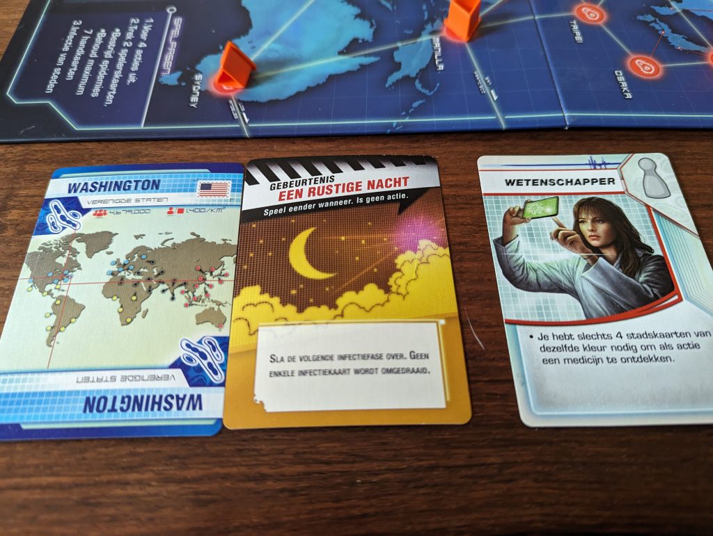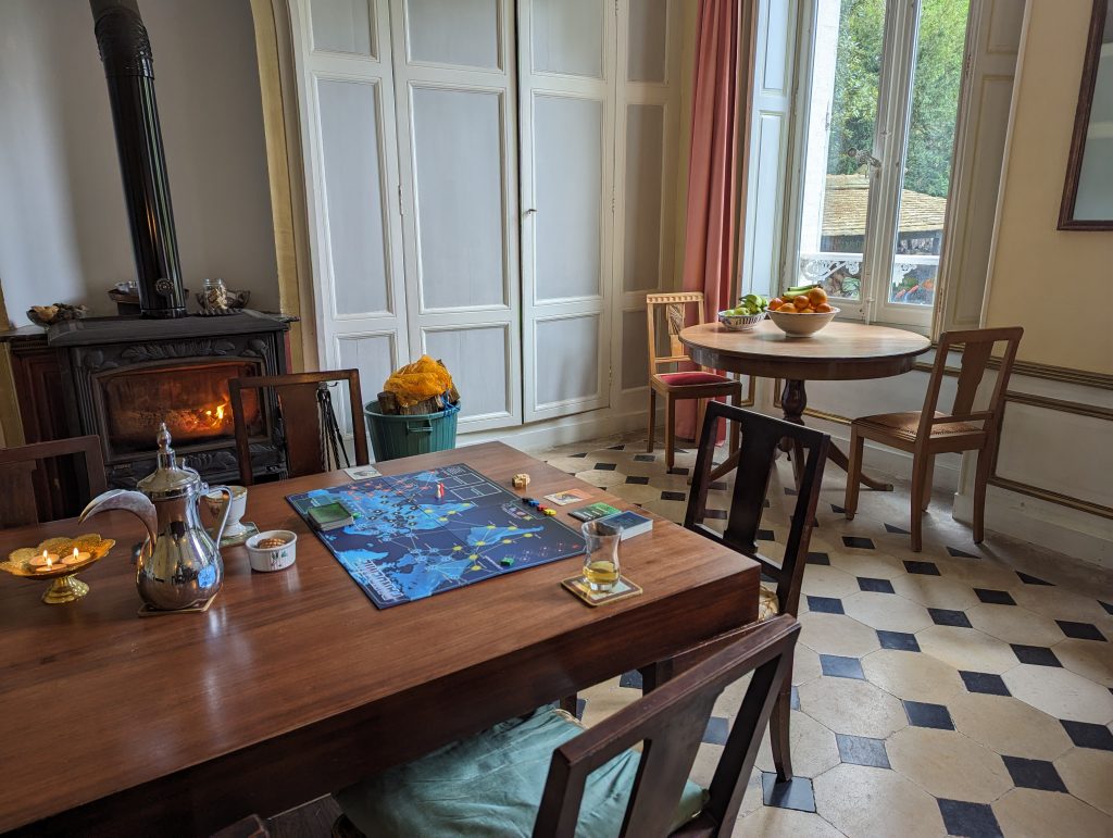 - We discover a game rack with ‘Pandemie’, which we jump straight into – the Dutch version, however, and without infection dice – instead we use the Trivial Pursuit markers, which also works.