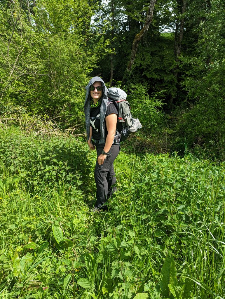- On the way we meet another long-distance hiker, with whom we chat a bit. He tells us that he is walking the Camino de Santiago, for which he has planned until the end of August – his wife is accompanying him for part of the way in Spain as are his 10, 12 and 15-year-old children – but otherwise he is walking alone.