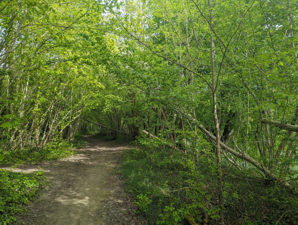 - We continue along a railway line on flat and relaxed country lanes and then back to the canal, which is getting bigger and more artificial.