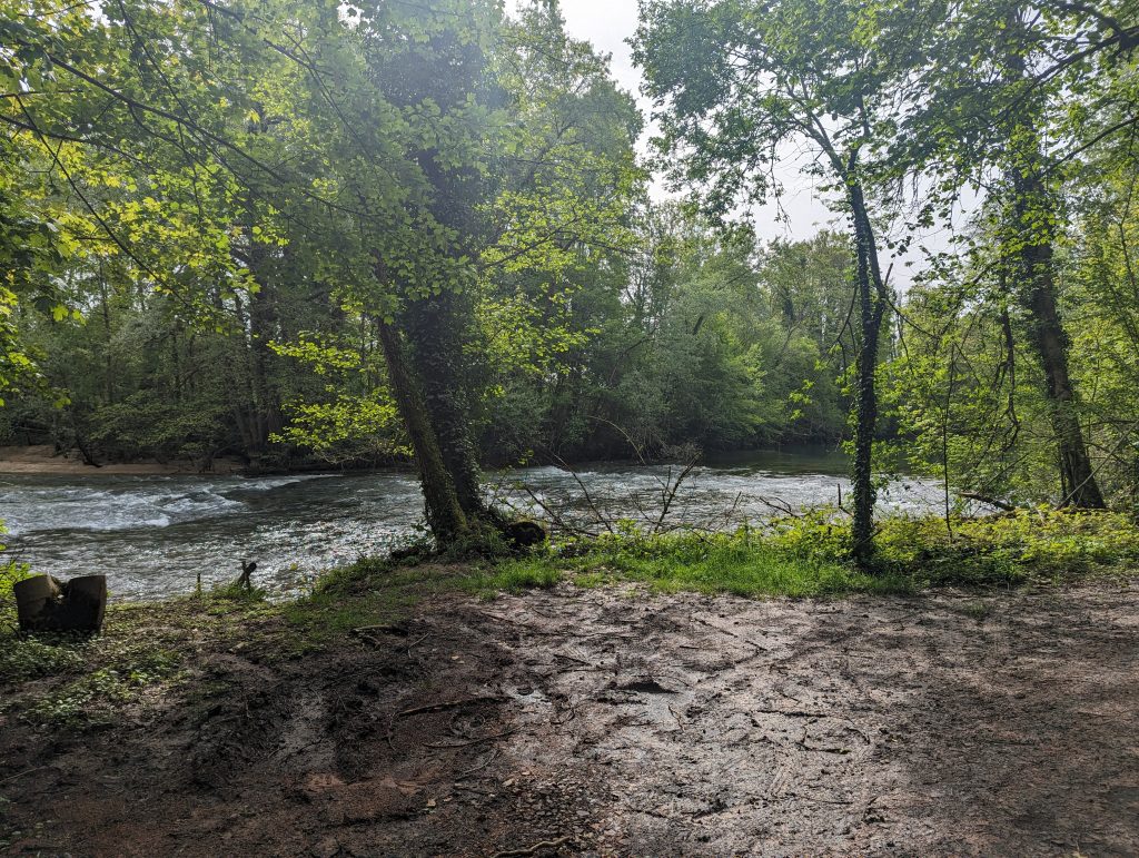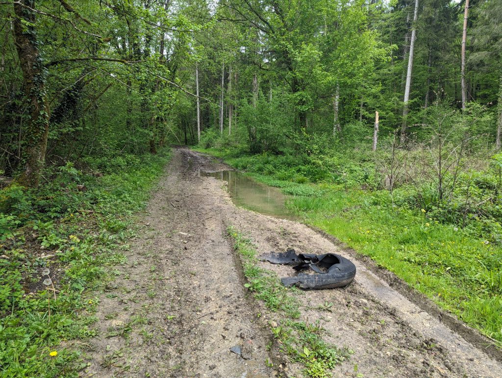 - We discover a broken car tyre in the forest – not cool – and a river, which we are relieved to discover we don’t have to cross.