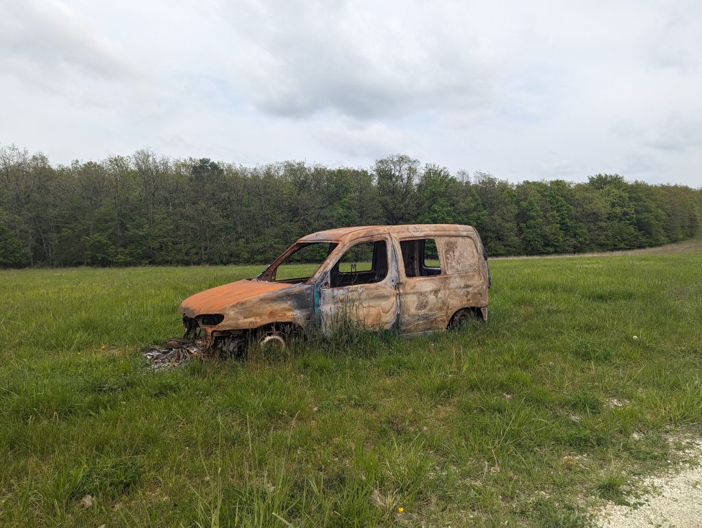 - Shortly afterwards, we find a burnt-out car next to the path, which gives us total Route 66 vibes.