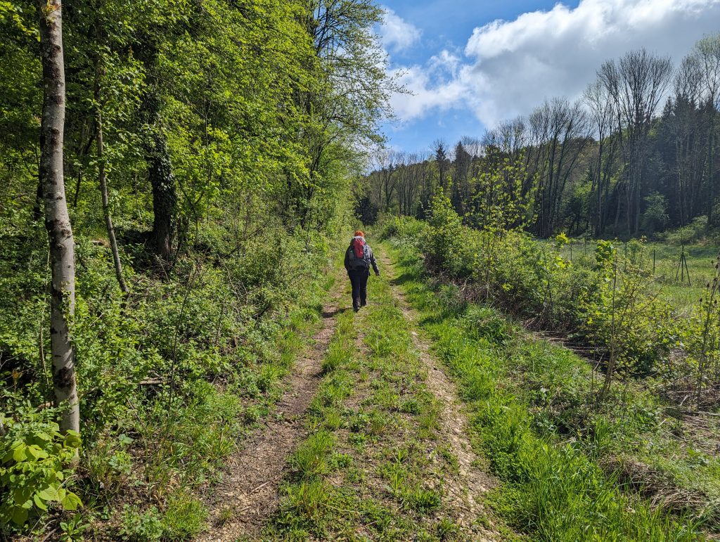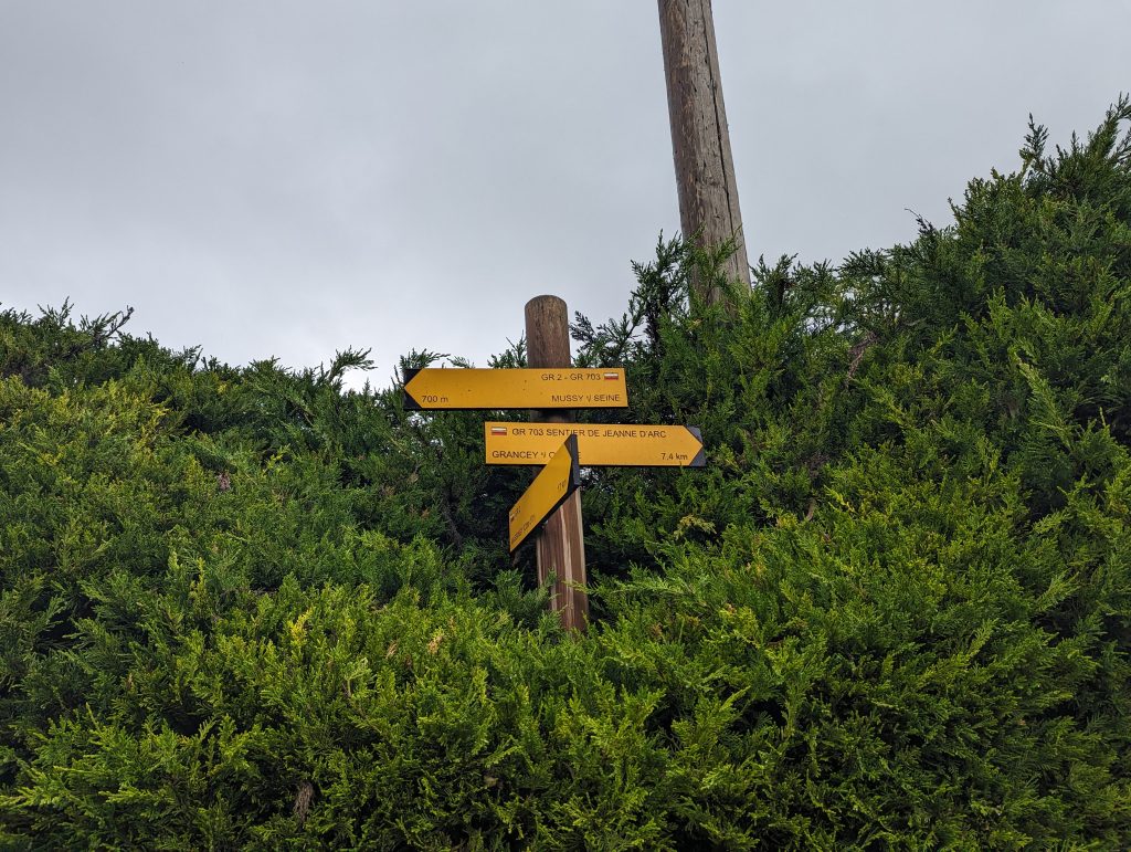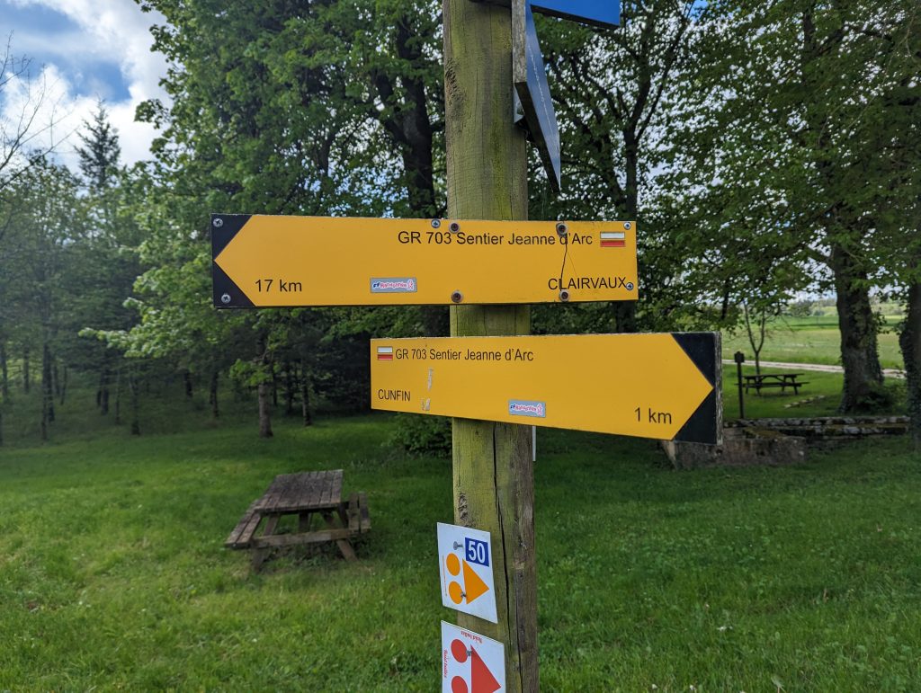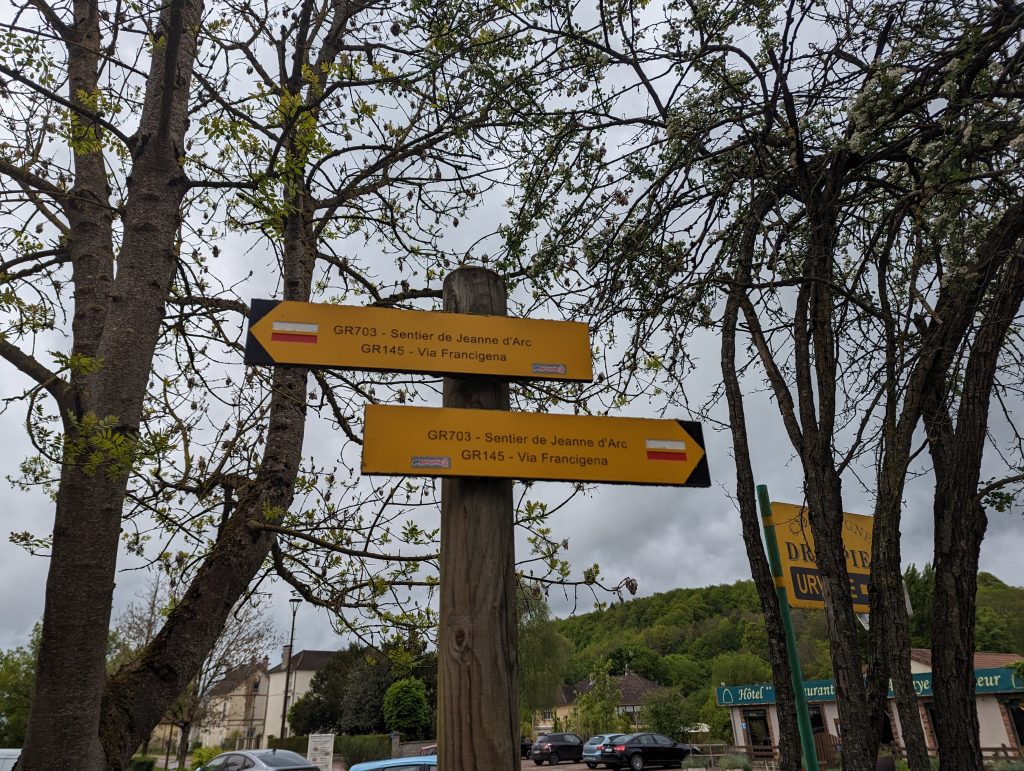 - We say goodbye and set off on the GR 703, the Jeanne D’Arc hiking trail, which first takes us on a very gentle – unusually gentle – climb up into the vineyards.