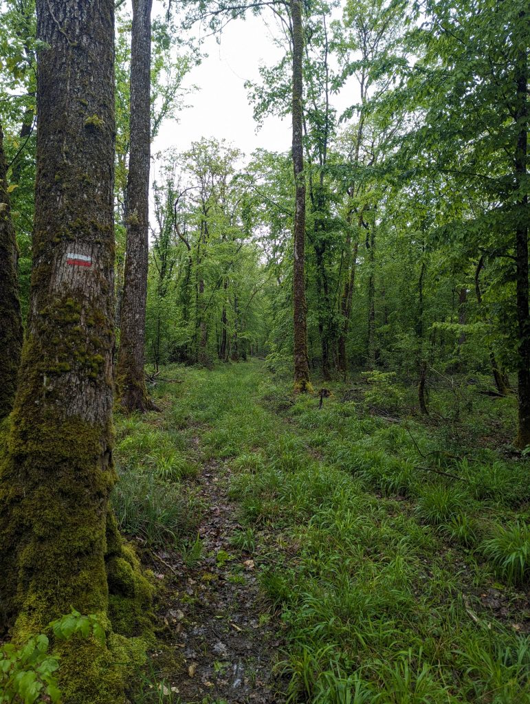 - Our path gets smaller and smaller: soon there is only a path leading into the forest, until suddenly the signposting for the GR2 (which we are currently on) stops completely – ah, a phenomenon from which no GR is spared.
