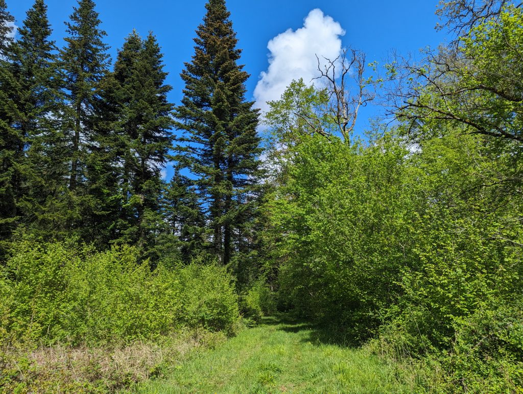 - We make our way through the thicket and finally end up on a huge track, which we walk along until we fortunately come across a path again.