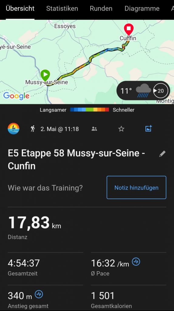 - The rest of the route is unspectacular – we take shelter under the canopy of a church for our lunch break, which at least keeps the rain off but not the cold, making the lunch break rather short.