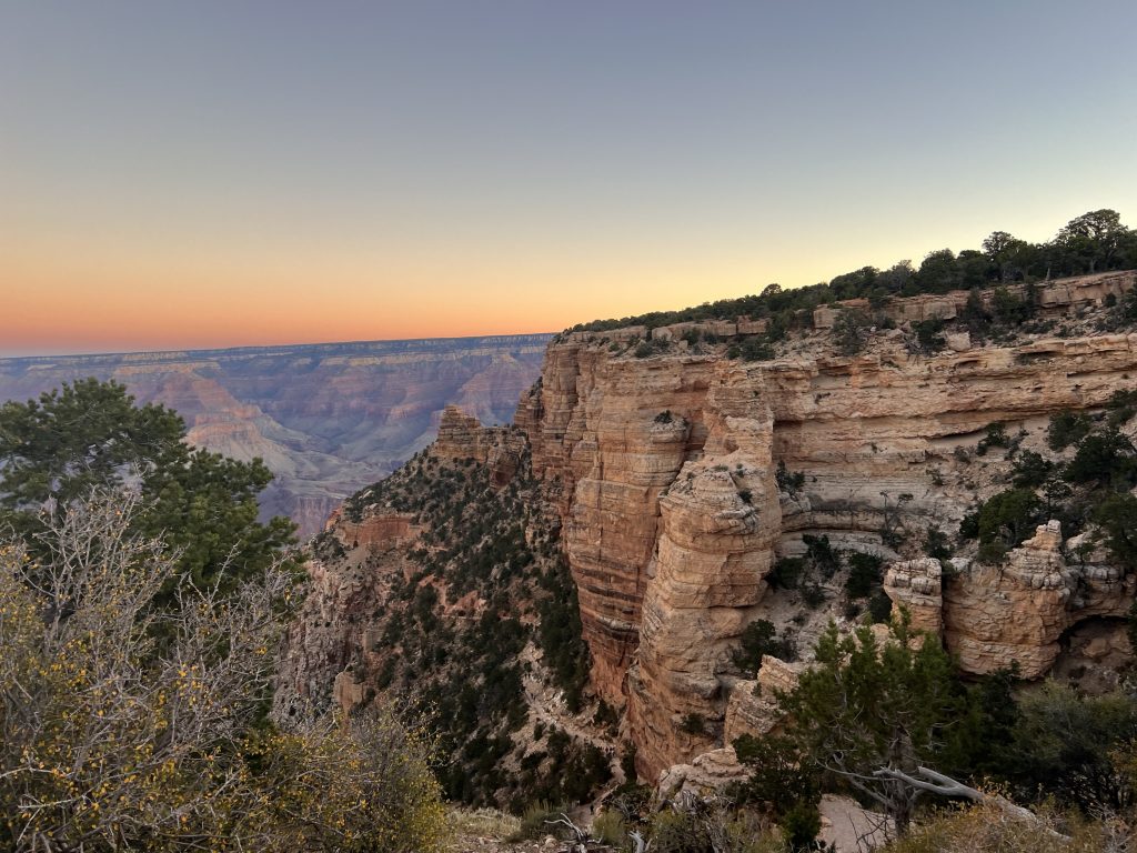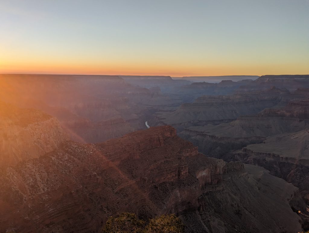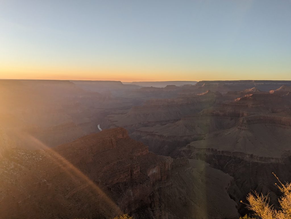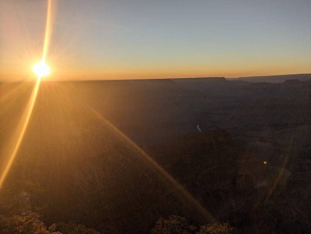 • The viewpoint where we get off is perfect and we enjoy the sunset and the great light in which the canyon appears again to the fullest – as Matthäus says “Now we have seen the Grand Canyon from sunrise to sunset in the full light of day” – it was totally worth it.