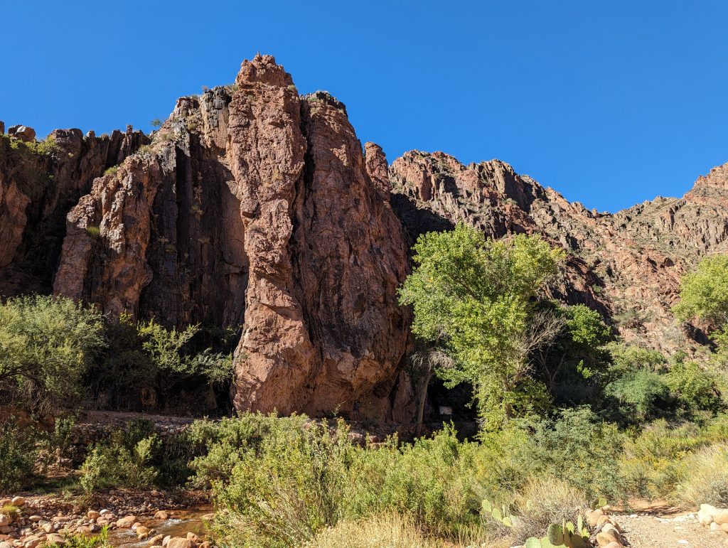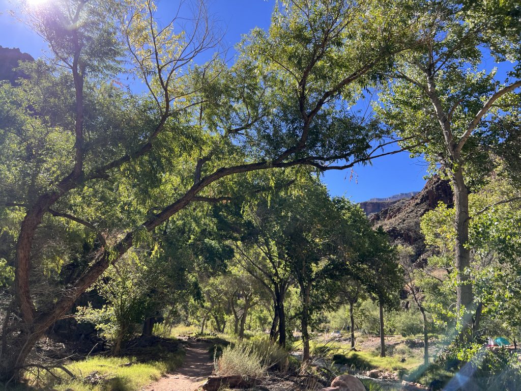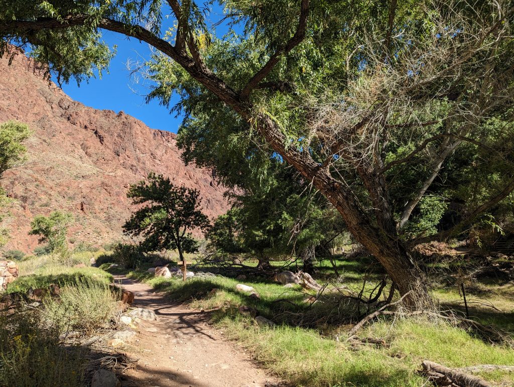 • Soon we reach the River Resthouse, situated on a small creek leading down to the Colorado River, where we take a longer break and refuel for the upcoming ascent.