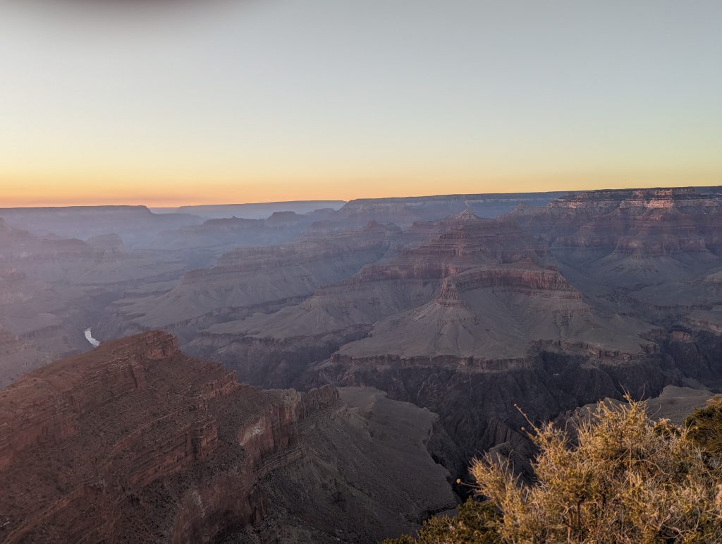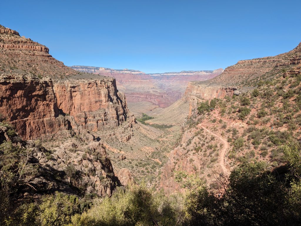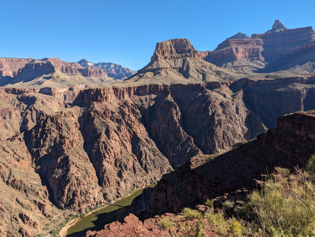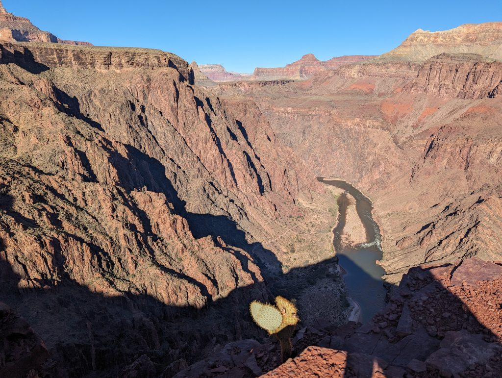• The small canyons in the big one also explain why we don’t get to see the Colorado, the river that has formed the canyon – it keeps hiding in the dark canyon until just before we reach the bottom – but then it reveals itself all the more impressive.