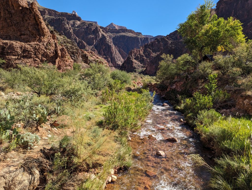 • We descend quite quickly and soon arrive at the bottom of the river, where a bridge leads to the other side and to Angels Camping and Phantom Ranch.