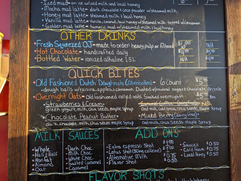 • I take the first driving shift, but first I need coffee, which I tell the others “Guys I need coffee!” I look out of the window of the motel, “Ah, over there!” – on the other side is a huge sign “Coffee”.