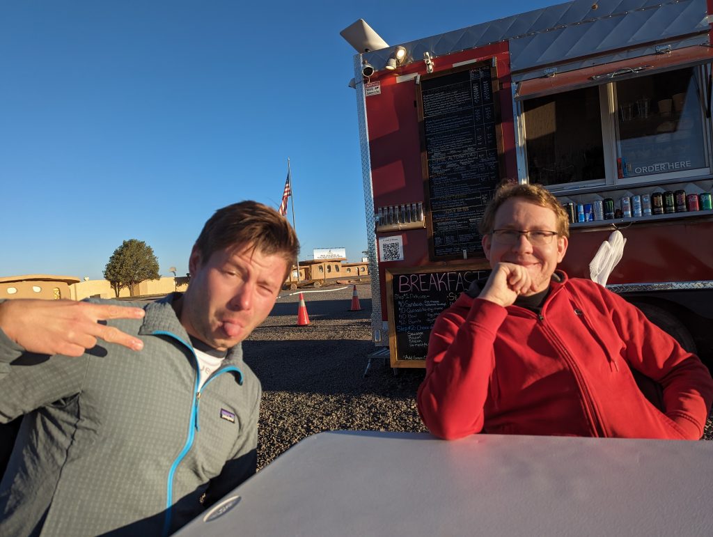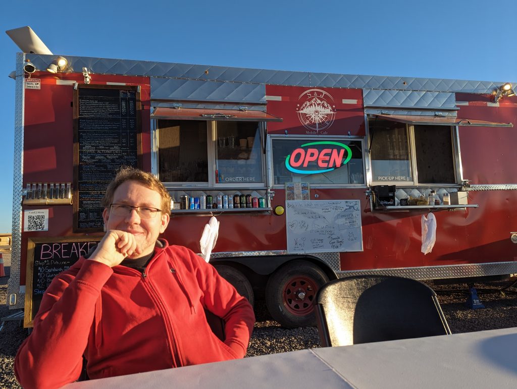 • So our first stop is right across the road, at a cute little coffee truck, which to our great delight has very good coffee and also delicious breakfast, which we eat with relish in the sun in front of the truck – that’s a good start to the day =)