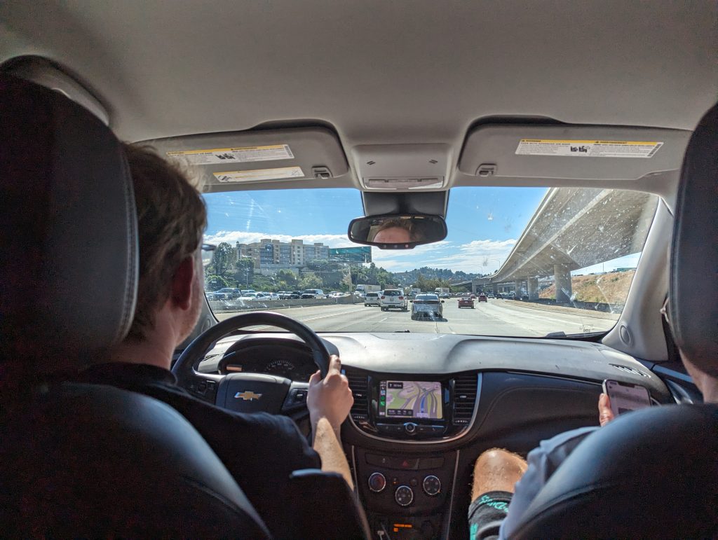 • Already 200km before Los Angeles the traffic starts to get very dense and even the 5-lane motorway is full of cars (see photo), there is even a lane for car pools, i.e. cars with 2 or more passengers, Matthäus: “That says everything about how busy the city is with cars” and Julian confirms that you can’t get anywhere in LA without a car, so it’s a real American city.