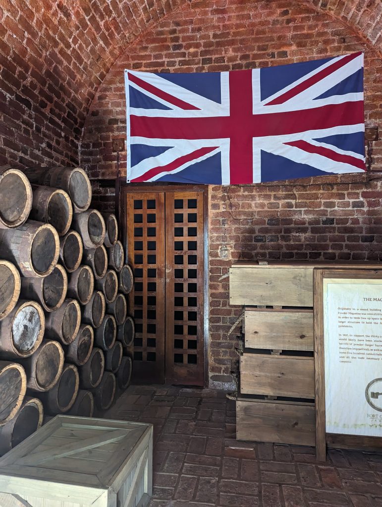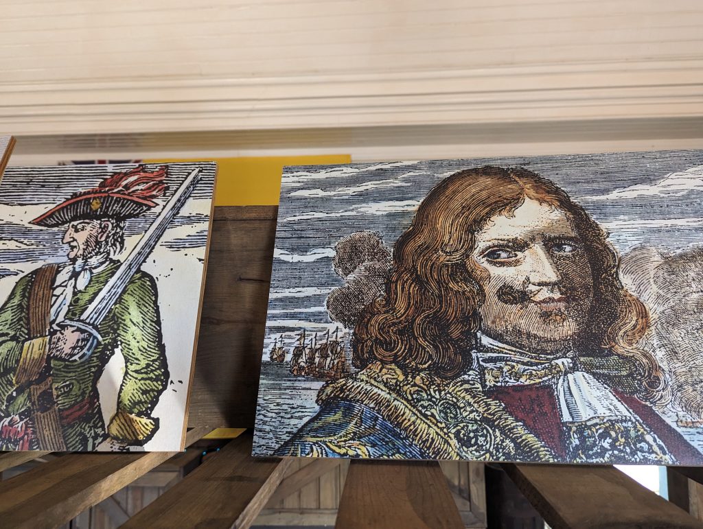 • Our guide also explains that pirate flags were by no means just black with a skull and crossbones on them; on the contrary, every pirate had their own flag, some examples of which are hung in the fort.