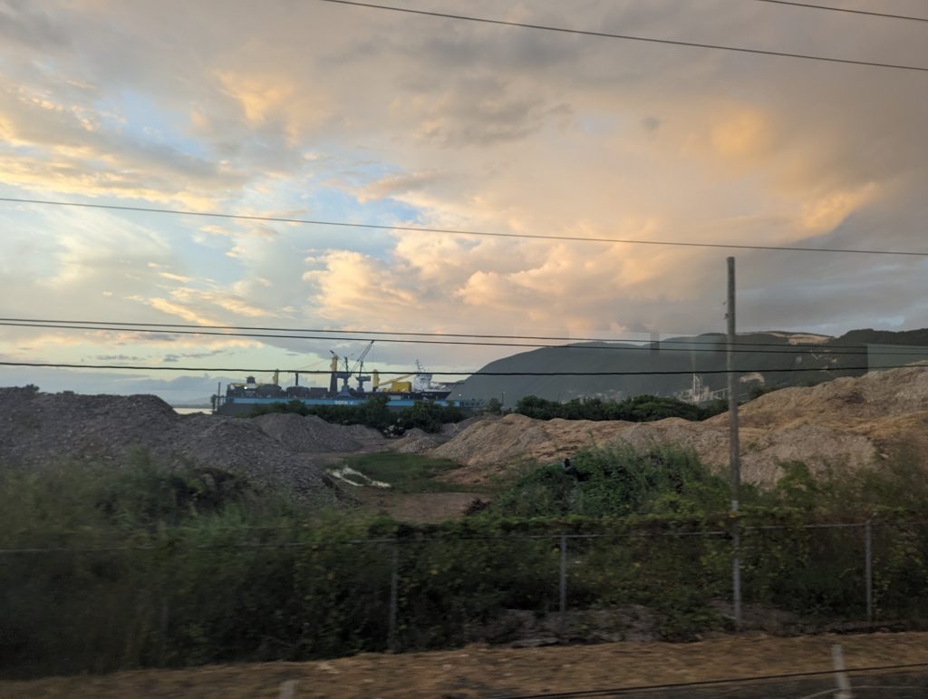 • Shortly afterwards, I see a large ship being loaded in Kingston harbor and tell Shave about it. He says slowly nodding: “Yes, rum.”
